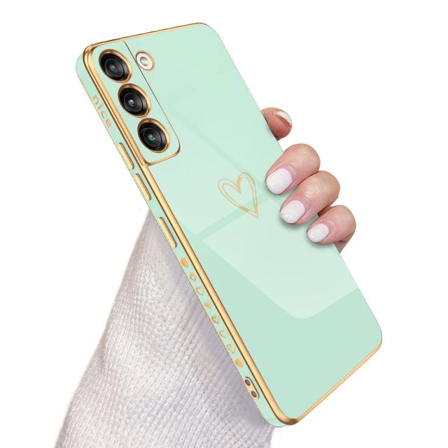 QLTYPRI Samsung Galaxy S22 5G ケース SC-51C | SCG13 ケース かわいい メッキラブハートソフト TPU カバー 女性 人気 軽量 スマホケ