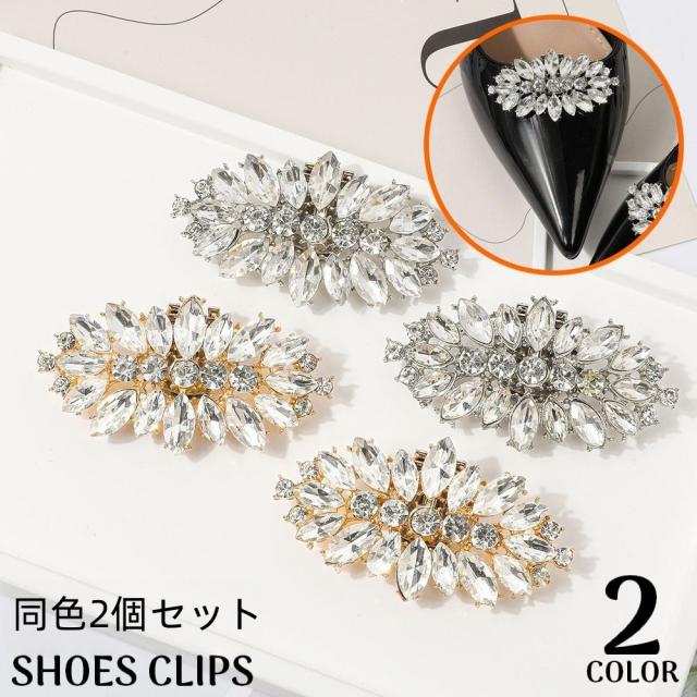 シューズクリップ 2個セット 1足分 シューズアクセサリー 靴飾り パンプス ラインストーン キラキラ 結婚式 卒業式 入学式