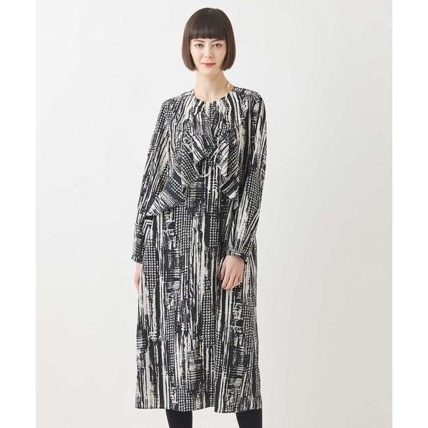 モダンアートのようなぼかしグレンチェックが印象的なワンピース