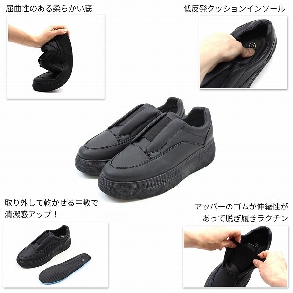 【25春夏新作】厚底ゴムデザインスリッポンスニーカー