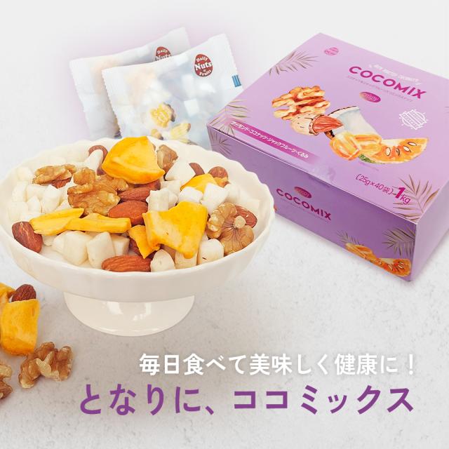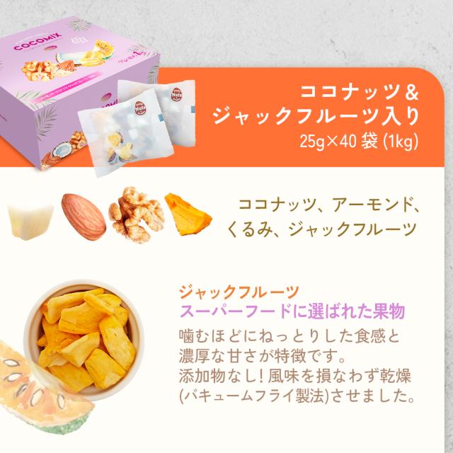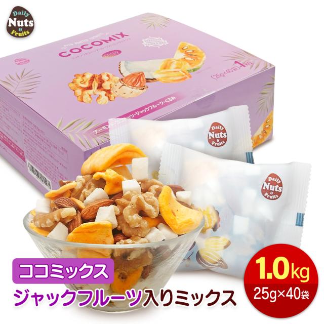 ココミックス ジャックフルーツ入りミックスナッツ 1kg(25g×40袋) ジャックフルーツ・アーモンド・ココナッツ・くるみ入り 南国ナッツ 詰め合わせ 小分けミックスナッツ ココナッツ 小袋 個包装 箱入り 母の日 健康 美容 非常食 備蓄食 保存食 プレゼント用 おやつ おつまみ