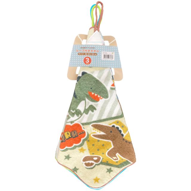 林(Hayashi) WO459700 ループ付きハンドタオル3枚組 コミックディノ(約30×30cm)柄違いのループ3枚組セット[WO459700] 返品種別A