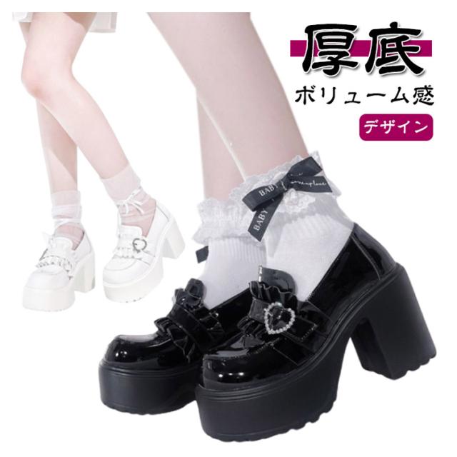 厚底パンプス 厚底パンプス シューズ ロリータ 量産型 厚底 9.5cm ローファー パンプス 靴 太ヒール ゴス 地雷系 サブカル地雷 ゴシック スリッポン ゴスロリ V系 厚底ローファー サブカル系 ラウンドトゥ レディース ゆめかわ ロリータ 通学