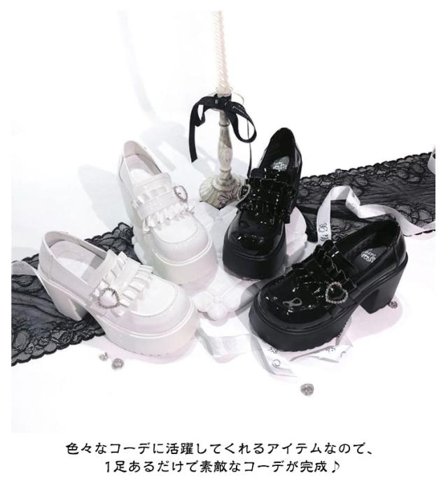 | 【厚底】【ボリューム感】 ボリューム感たっぷりの厚底ソールが特徴で履くだけで簡単に美脚効果も期待できます 【デザイン】人気のフリル付き厚底ローファー ボリュームあるソールが今っぽコーデにアップデートしてくれます 量産、地雷系はもちろん、フェミニンコーデのハズしにも大活躍! 履くだけで盛れてかわいいローファーです♪ 色々なコーデに活躍してくれるアイテムなので、1足あるだけで素敵なコーデが完成♪ | |