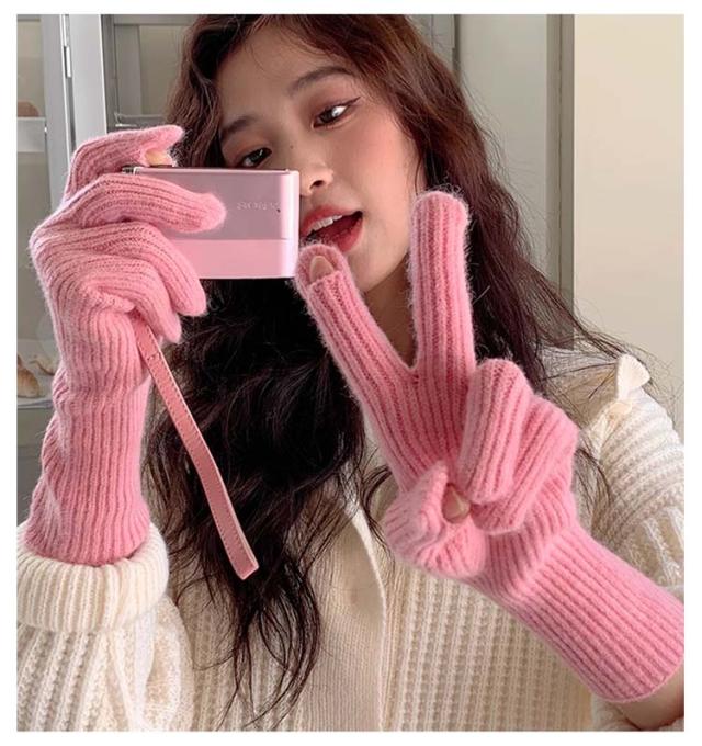 | 穴付きワンカラー手袋! 装着したままスマホが使える 手首まで暖かい! | |