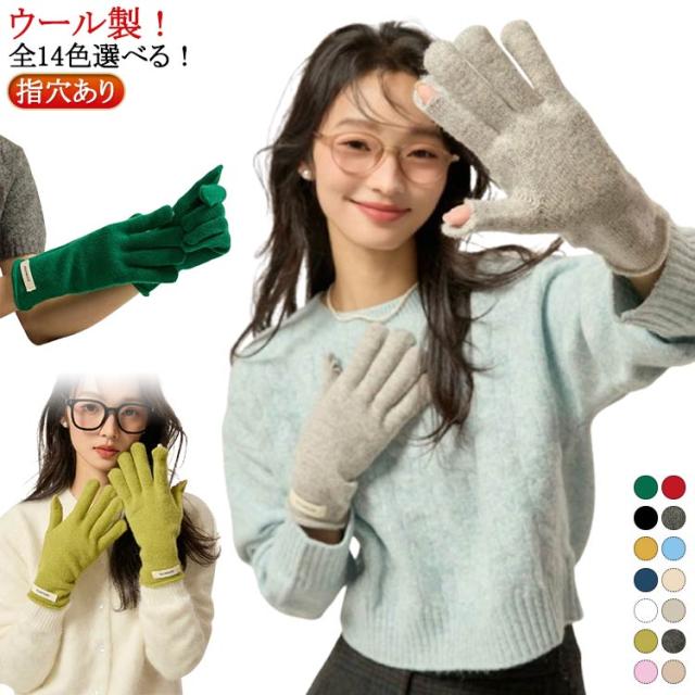 | ウール製! 全14色選べる! 両手の親指と人差し指が出せる仕様 手首まで暖かい! | |