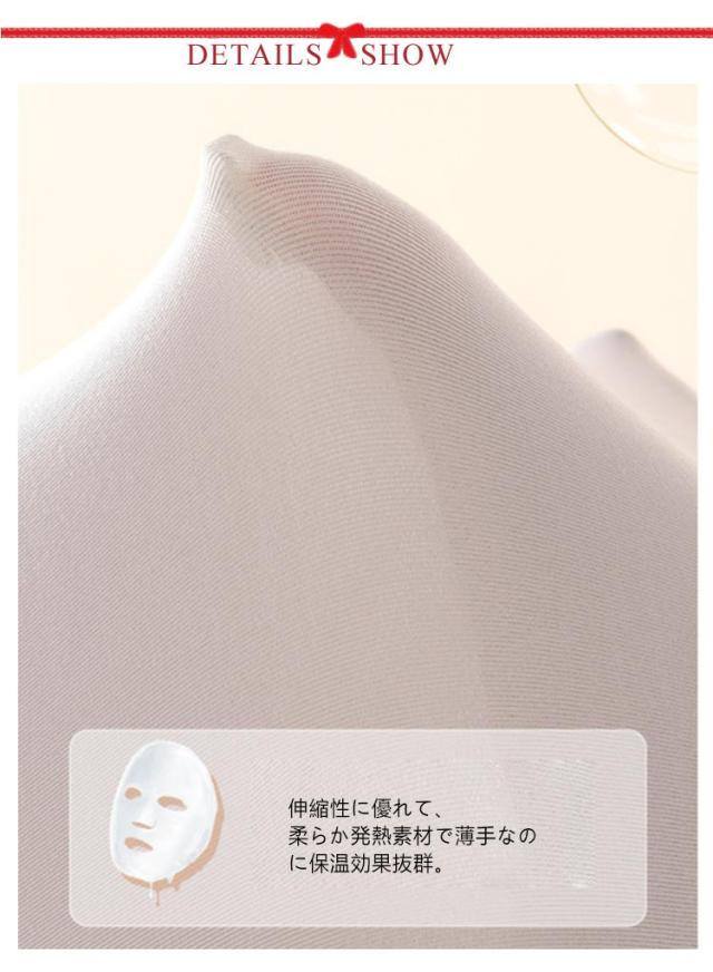 | 薄手でもしっかり温かいヒートインナー。 伸縮性に優れて、柔らか発熱素材で薄手なのに保温効果抜群。 着心地は緩すぎず締めつけすぎず、程よいピッタリ感であり、あったかインナーとしておすすめ。 一度手にとって実感していただきたいアイテムです!! | |