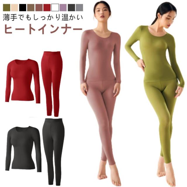 長袖 上下セット ヒートインナー インナー 新色追加!極薄 発熱インナー 美ライン 暖かい インナー レディース 防寒インナー 保温 新色追加!極薄 春 秋 冬 大きサイズ 高伸縮 静電気防止