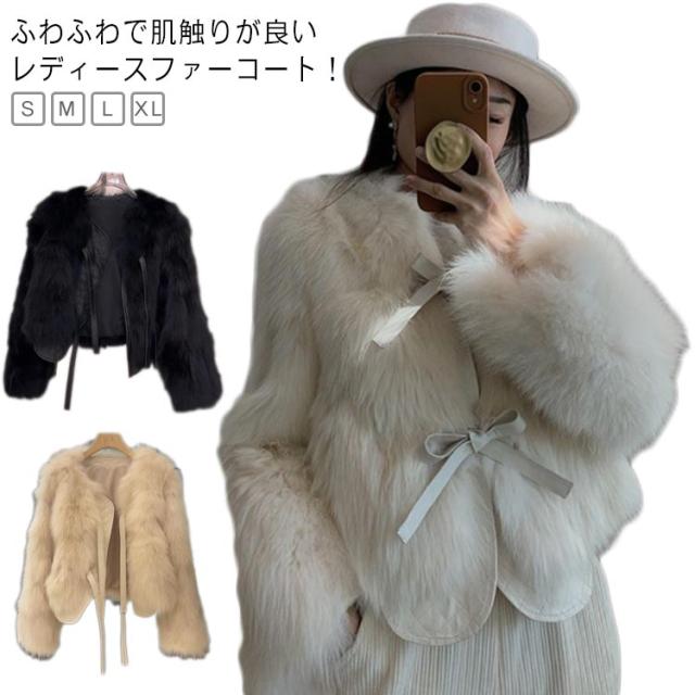 ファーコート レディース ブルゾン フェイクファー ショート丈 コート ケープ ノーカラー もこもこ ショート ファーケープ 秋冬コート ジャケット ふわふわ 防寒 アウター カジュアル きれいめ エレガント ファージャケット