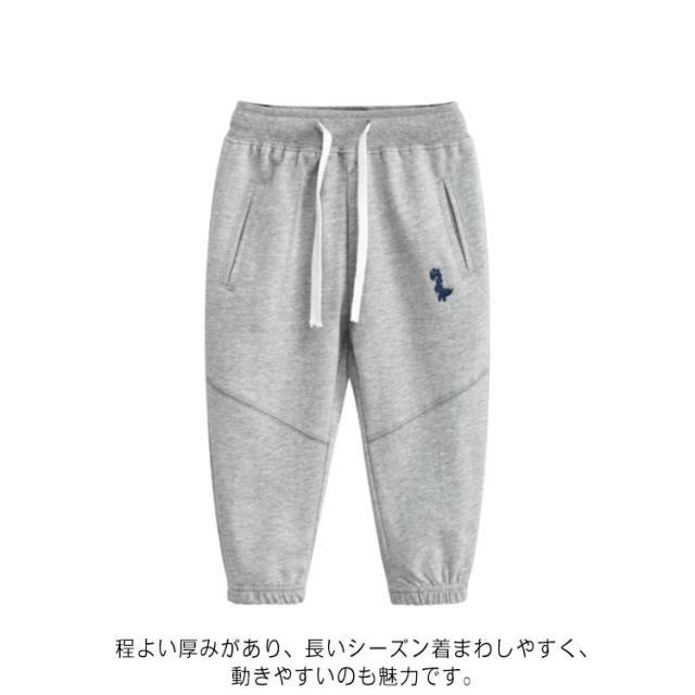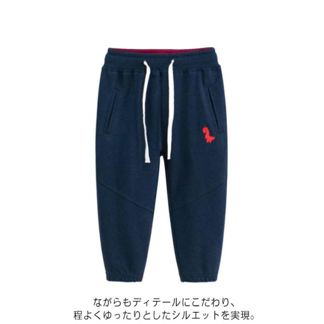 | 90〜140cm!着やすい裾リブスウェットパンツ 恐竜のワンポイントがキュートなキッズパンツ。 ながらもディテールにこだわり、程よくゆったりとしたシルエットを実現。 程よい厚みがあり、長いシーズン着まわしやすく、動きやすいのも魅力です。 裏がパイル状になっているので、吸汗性が良く汗ばむ日でも快適な着心地。 トレンド感のあるアイテムを合わせてスタイリッシュに着こなすのもおすすめです。 | |