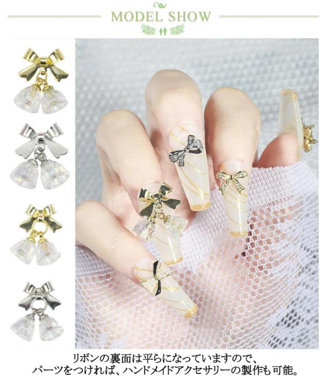 ネイル ゴールド Bell ネイルパーツ ベル 鈴 リボン シルバー ジェルネイルアート スウィング Ribbon スウィング チャーム リボン ピアス イヤリング 作成 ハンドメイドアクセサリー 12個入 デコパーツ ネイルパーツ メタル ピアス チャーム