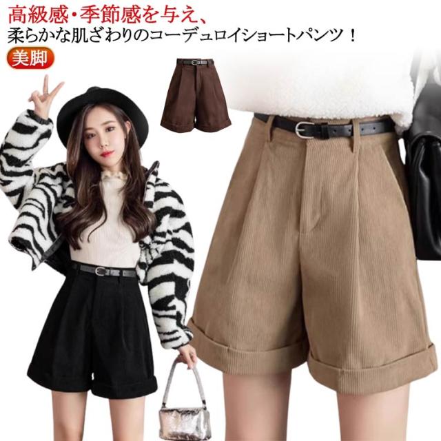 ショートパンツ レディース 秋冬 コーデュロイパンツ あったか ハーフパンツ コーデュロイ コーデュロイ ワイド コーデュロイショートパンツ 膝上 ハイウエスト ハイウエストハーフパンツ ワイドシルエット レディース ワイドパンツ 短パン ボトムス 美脚 暖かい
