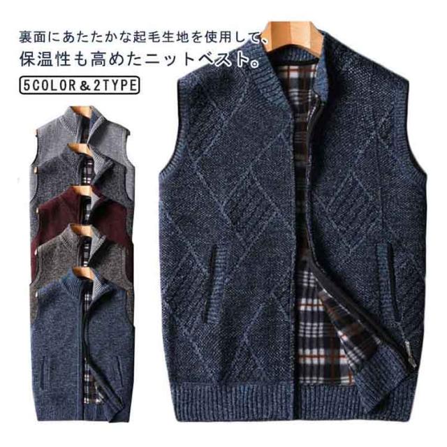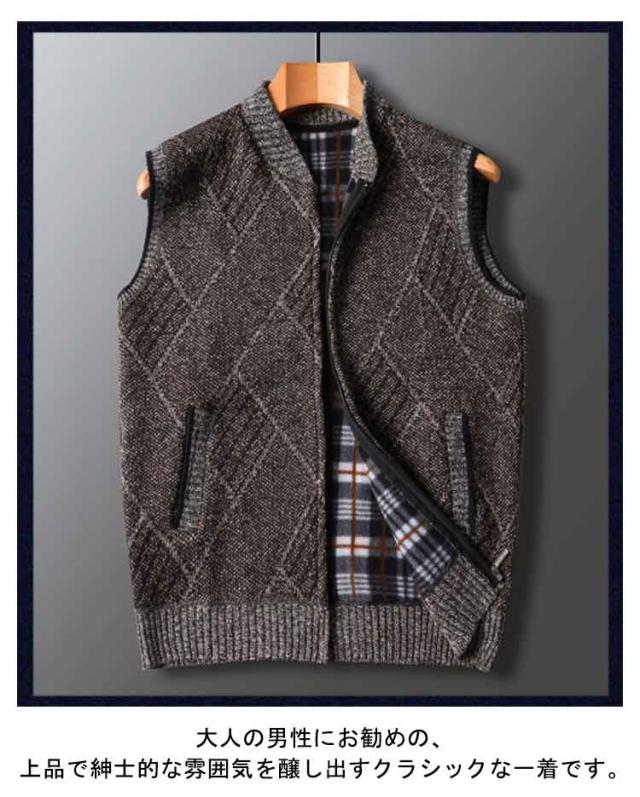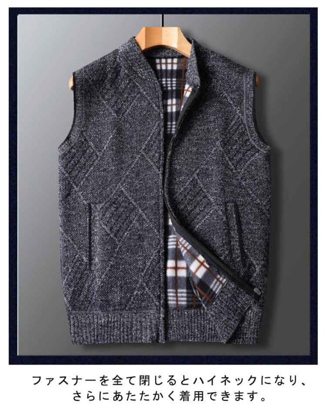 ベスト ジップアップ メンズ ジャケット 裏ボア ニットベスト ビジネス チョッキ カジュアル トップス 厚手 ベスト ジレ ゴルフ 暖かい 仕事 前開き ゴルフウェア スポーツ 防寒 ハイネック おしゃれ 誕生日 プレゼント ポケット ファスナー 秋冬