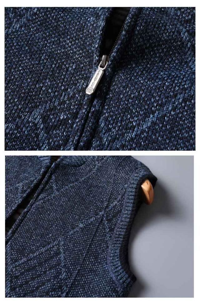 | 裏面にあたたかな起毛生地を使用して、保温性も高めたニットベスト。 ファスナーを全て閉じるとハイネックになり、さらにあたたかく着用できます。 大人の男性にお勧めの、上品で紳士的な雰囲気を醸し出すクラシックな一着です。 着まわししやすいカラーなので、Tシャツの上に着たり、寒い時期はアウターにインしたりとコーディネートの幅が広がります。 しっかりした素材感で肌触りよく、使い勝手、コスパ、どれを取ってもオススメな1着となっています。 | |