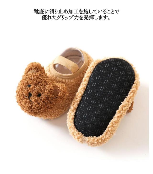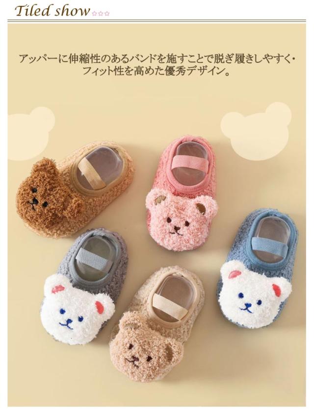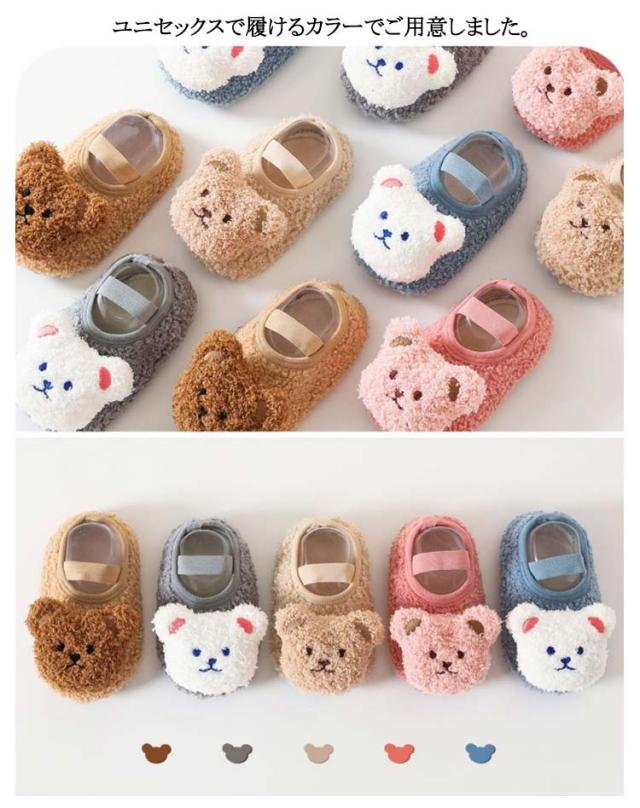 入園 ルームシューズ ベビーソックス ファーストシューズ ファーストシューズ 冬 赤ちゃん 室内履き ベビー ボートソックス 靴下 ルームソックス ボア 春 秋 男の子 滑り止め スリッパ 暖かい 通学 入学 ソックス 幼稚園 くま柄 熊 ピンク ブルー グレー キャメル