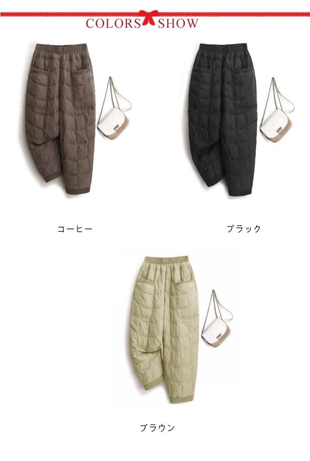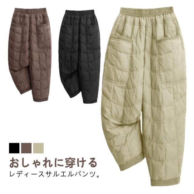 冬用 中綿パンツ 部屋着 キルティングパンツ 暖かい 中綿入り カジュアルパンツ サルエルパンツ レディース 防寒 ルームウエア 冬用 ボトムス ウエストゴム ポケット付き 楽チン 秋冬
