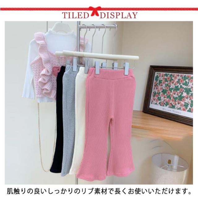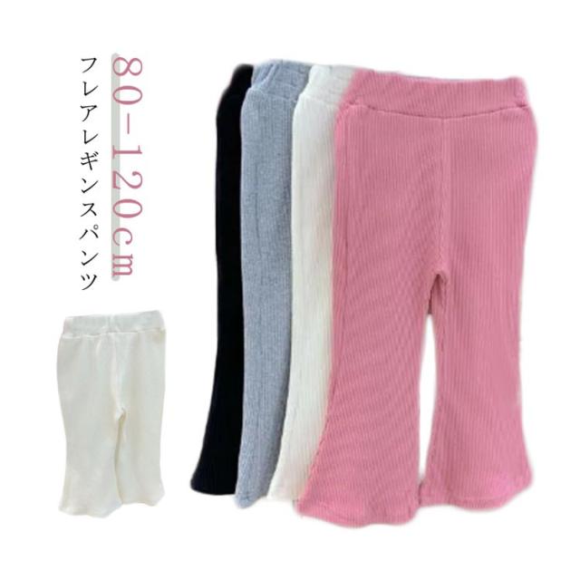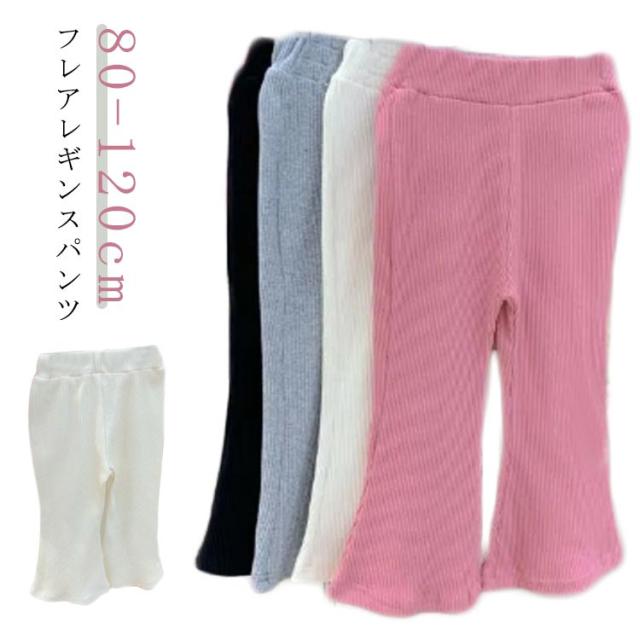 | フレアレギンスパンツ 80-120cm 肌触りの良いしっかりのリブ素材で長くお使いいただけます。 伸縮性もあるのでお子様が一人でお着替えする時も苦労しません! ウエストのゴムがしっかりめ、でもきつくなさそう。 | |