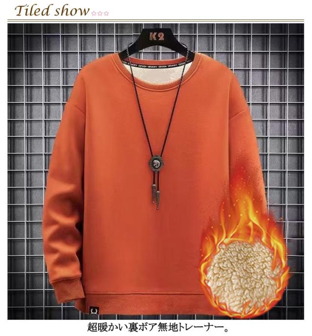 | 男女兼用 極暖!袖部分まで裏ボア仕様の、スウェットトレーナー 超暖かい裏ボア無地トレーナー 内側がふんわりモコモコボア仕様のスウェット 毛布に包まれたような暖かさで、寒い季節の部屋着やパジャマにおすすめ | |