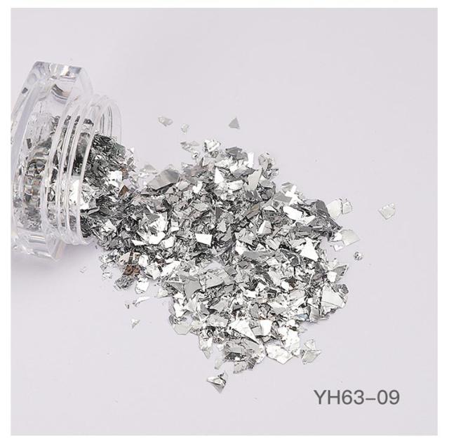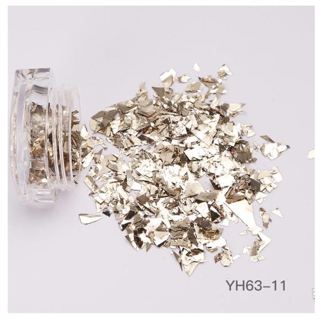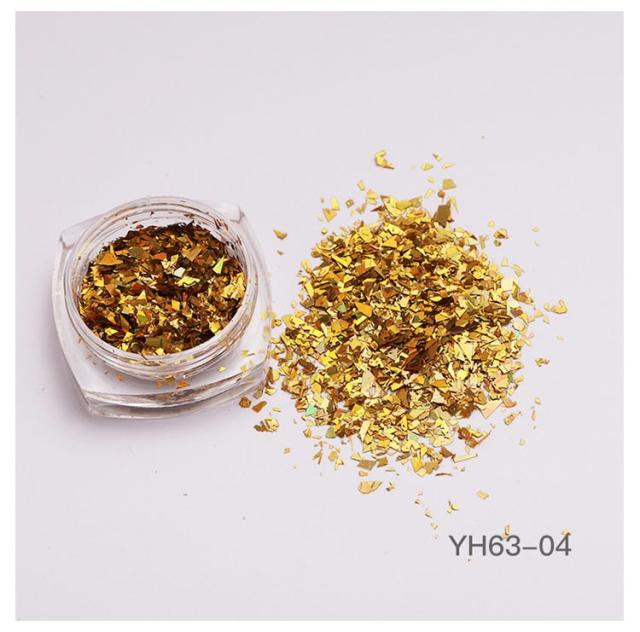 ネイル ガラスフレンチ 8g/個 ホログラム スパンコール 6個セット シャンパンゴールド ネイル ランダムカット シルバー キラキラクラッシュラメ フレーク グリッター ネイルパーツ ネイルパーツ セルフネイル