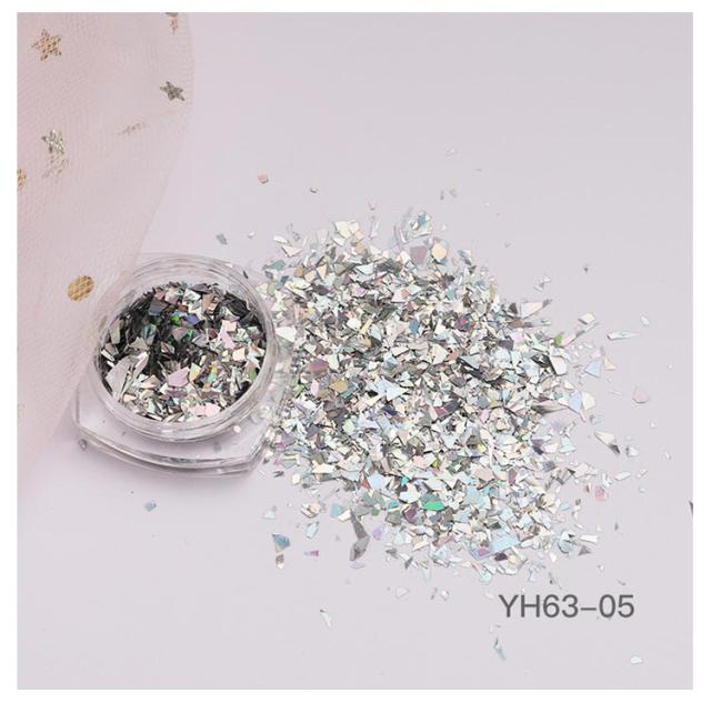 | 6個セット ランダムにカットされた乱切りホログラムグリッター 全体に埋め込んでも綺麗! 流行りのガラスフレンチネイルにも | |