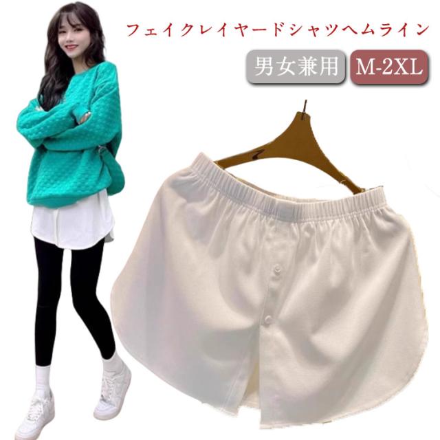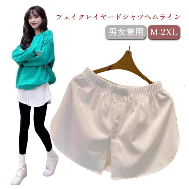 メンズ フェイクレイヤードシャツ 重ね着風シャツ つけシャツ レイヤードスタイル ボタン付きデザイン レディース 男女兼用 つけ裾 ブラック ホワイト シンプル 無地