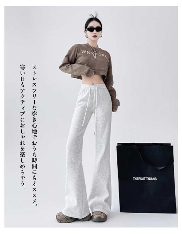 選べる着丈 カジュアルパンツ 裏起毛パンツ ジャージ 裏起毛/薄手 フレアパンツ パンツ フレアパンツ レディース ブーツカット パンツ シューカット スポーティー ジャージパンツ レギンス レギパン 美脚 防寒 脚長効果 スタイルアップ