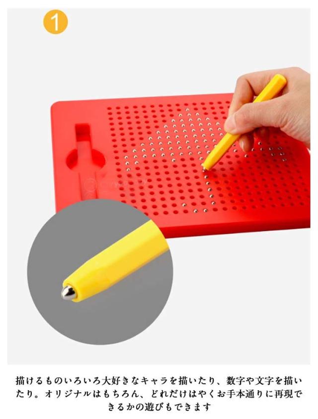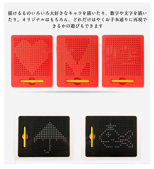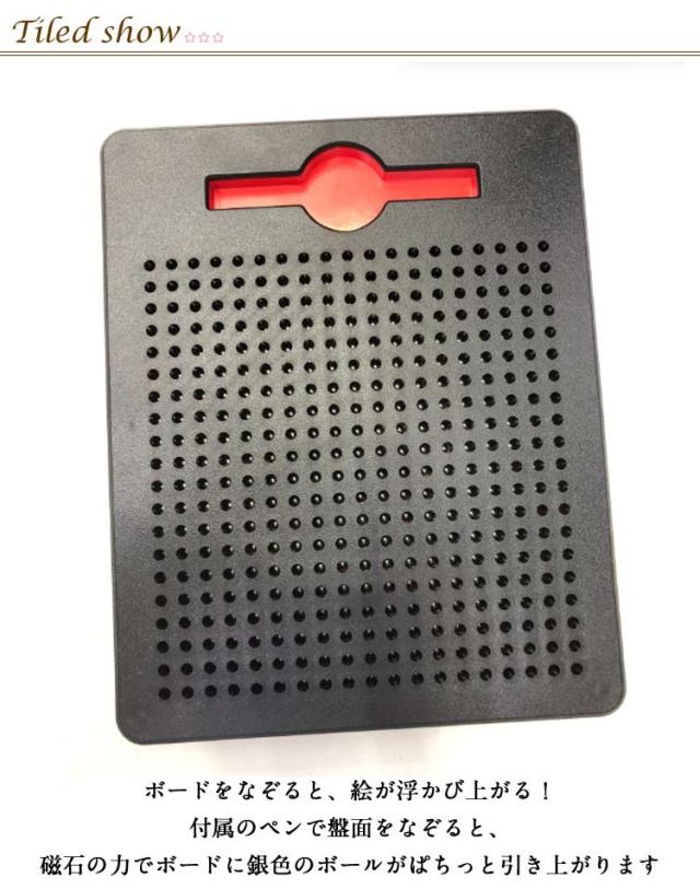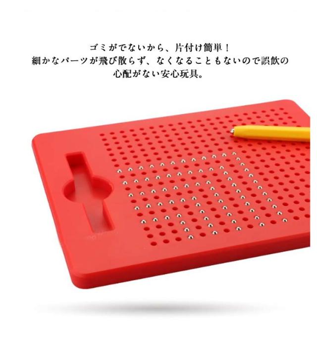| 大人も子供も繰り返し遊べるお絵描きマグネットボード ボードをなぞると、絵が浮かび上がる! 付属のペンで盤面をなぞると、磁石の力でボードに銀色のボールがぱちっと引き上がります ゴミがでないから、片付け簡単! 細かなパーツが飛び散らず、なくなることもないので誤飲の心配がない安心玩具。 コンパクトなので、お出かけにも最適! 現代社会の子育てはなにかと タブレットや動画配信に頼りがち。 情報を一方的に受けるだけでなく、自分で手を使って何かを書くことによって感性が養われます。 描けるものいろいろ大好きなキャラを描いたり、数字や文字を描いたり。 オリジナルはもちろん、どれだけはやくお手本通りに再現できるかの遊びもできます 危なくないよう、角を丸く仕上げました。 紛失防止のため、ペンの収納場所付き 繰り返し使えるからとってもエコ。 失敗しても、すぐに直せて繰り返し遊べる。 完成した作品は写真に撮って、SNSにも発信できるみやすい仕様なのでこれ1つで長く使えてとてもお得。 | |