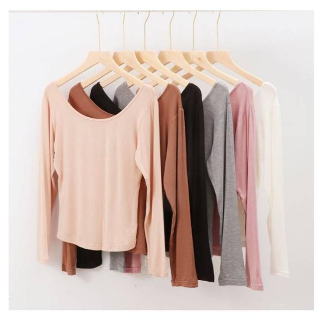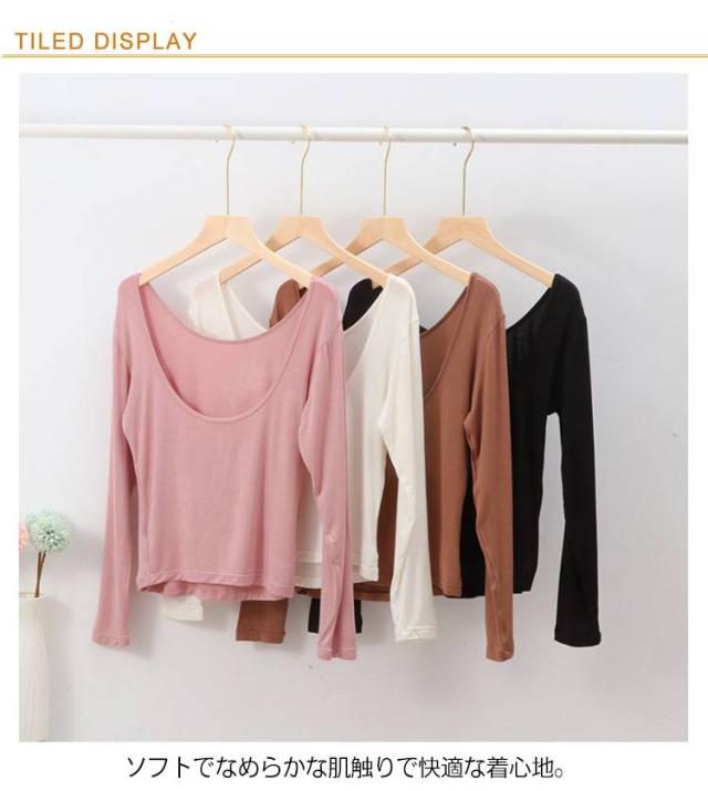 お洒落 深開き インナー 深開き 深開き 肩開き アンダーシャツ レディース 背中あき 肩あき インナー 長袖 春秋冬用 保温 防寒 トップス インナーシャツ シンプル 薄手