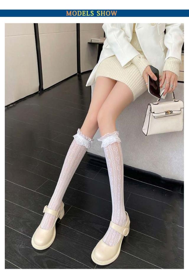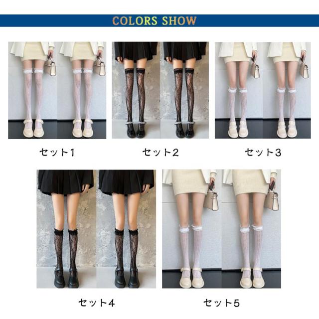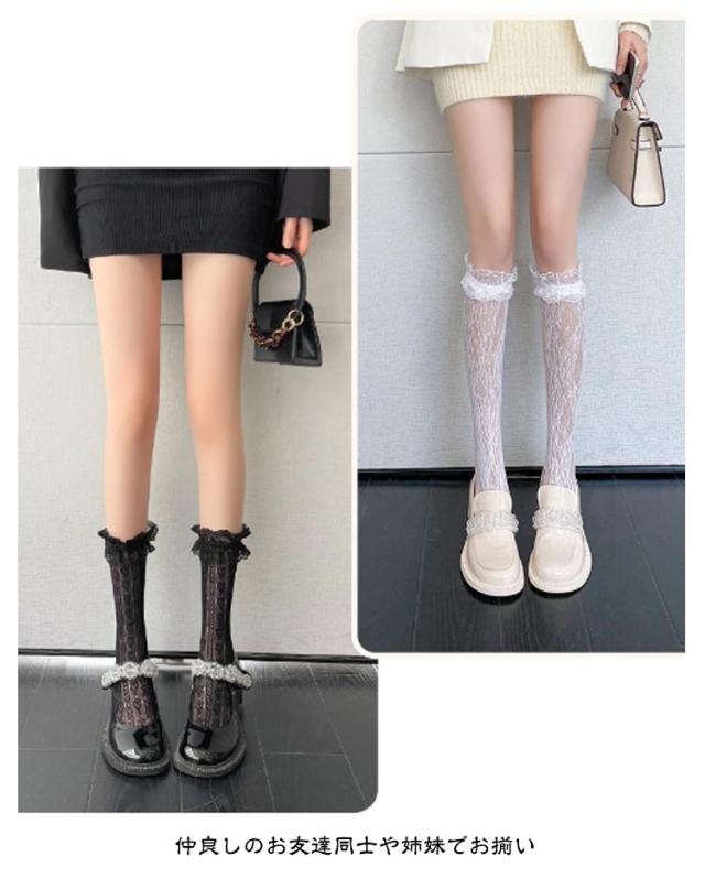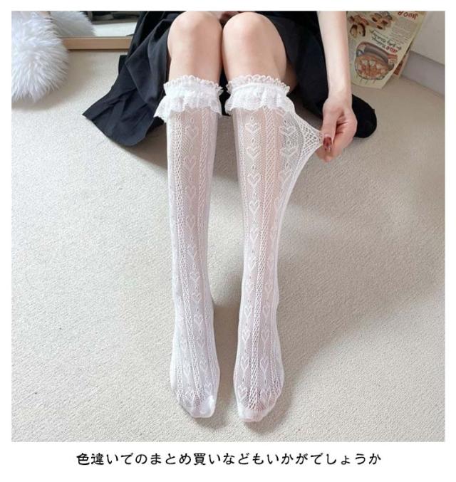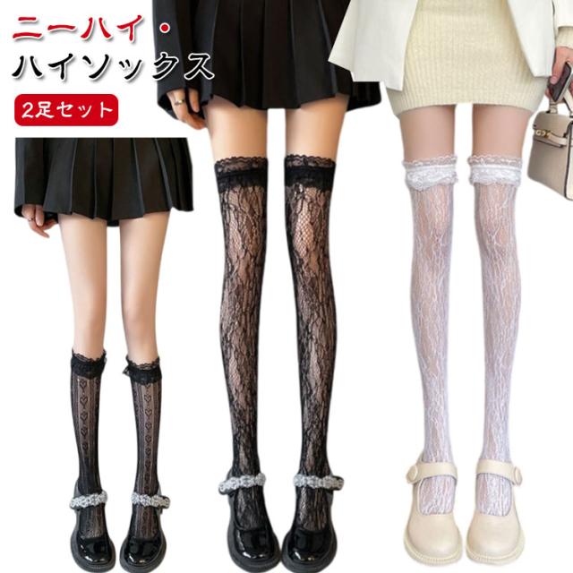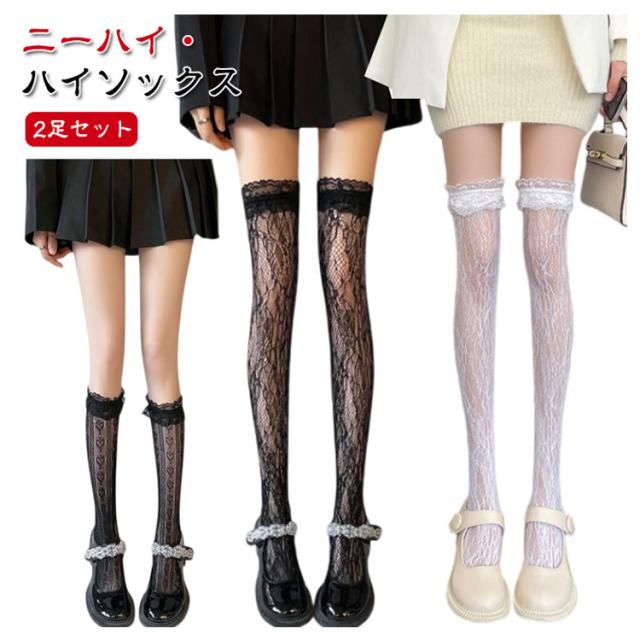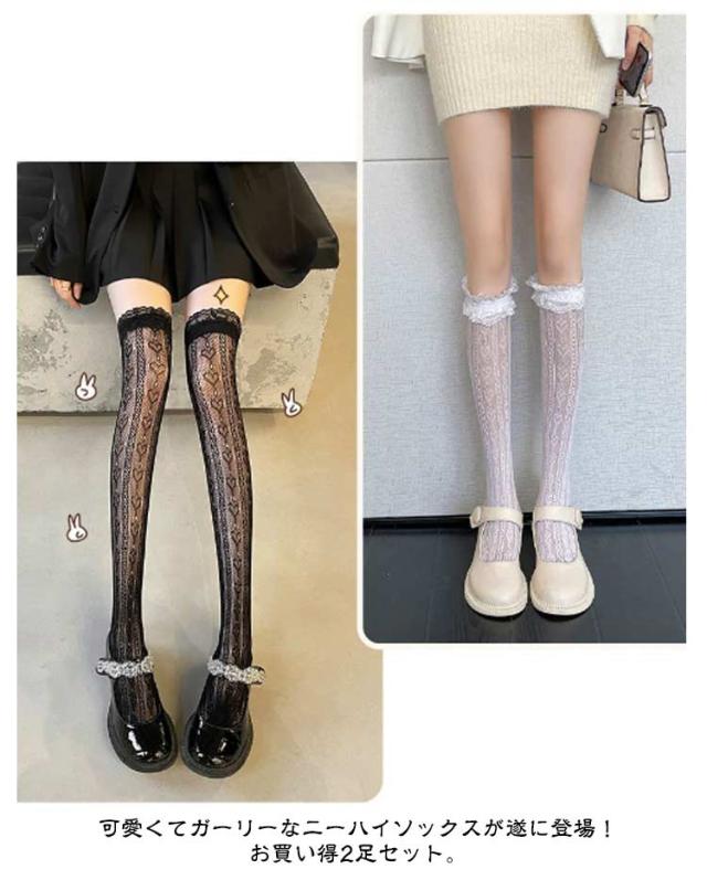 白 レース 靴下 フリル 2足セット ニーハイソックス ハイソックス ソックス 黒 地雷系 ブラック ホワイト シースルー レディース オーバーニー 美脚 2足セット 量産型 透け感 かわいい 姫系 ゴスロリ ロリータ 発表会 入学式 卒業式