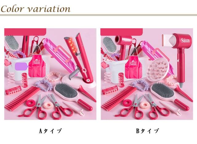 | ・おままごと美容師セット ・本物そっくりのおもちゃで、おとなのマネをしたり美容師さんごっこを楽しみましょう! ・場面をイメージしながら遊ぶことで想像力や発想力、コミュニケーション力を育みます。 | |