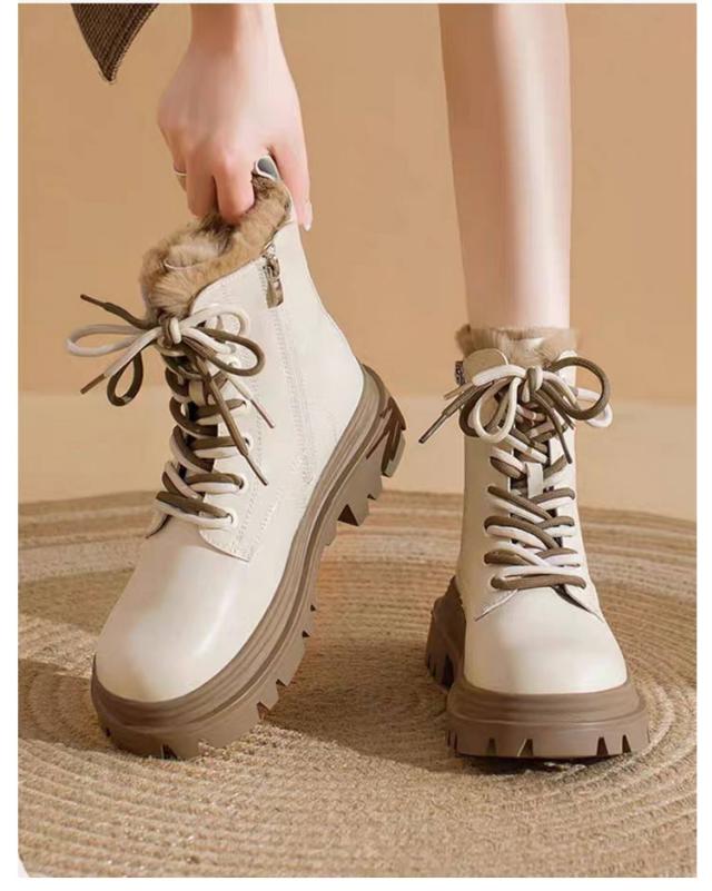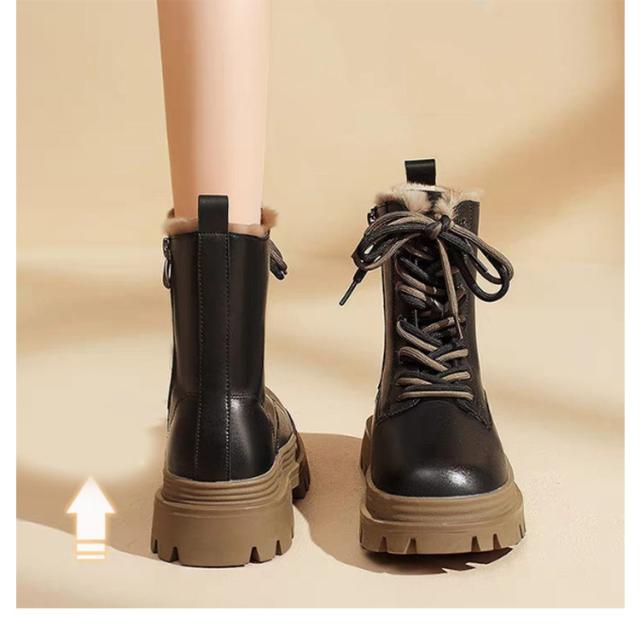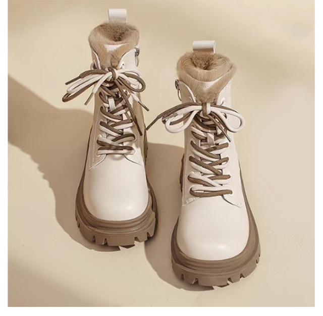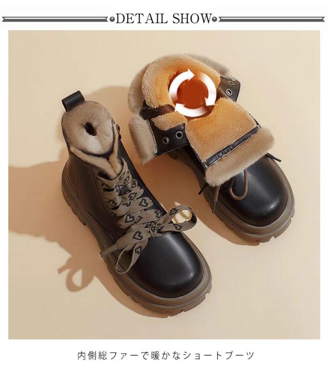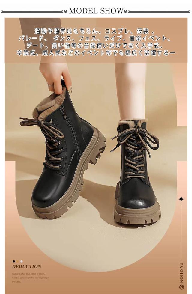 レースアップブーツ 秋冬 ファーブーツ ショートブーツ 裏起毛 レディース サイドジッパー 袴ブーツ ハイカット 厚底 ショートブーツ 防水 滑らない 痛くない カジュアル 履きやすい 防滑 防寒 ブラック ベージュ