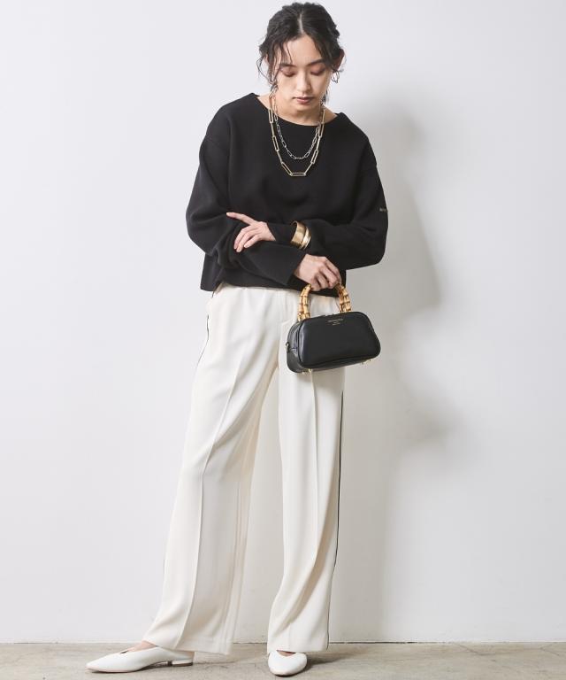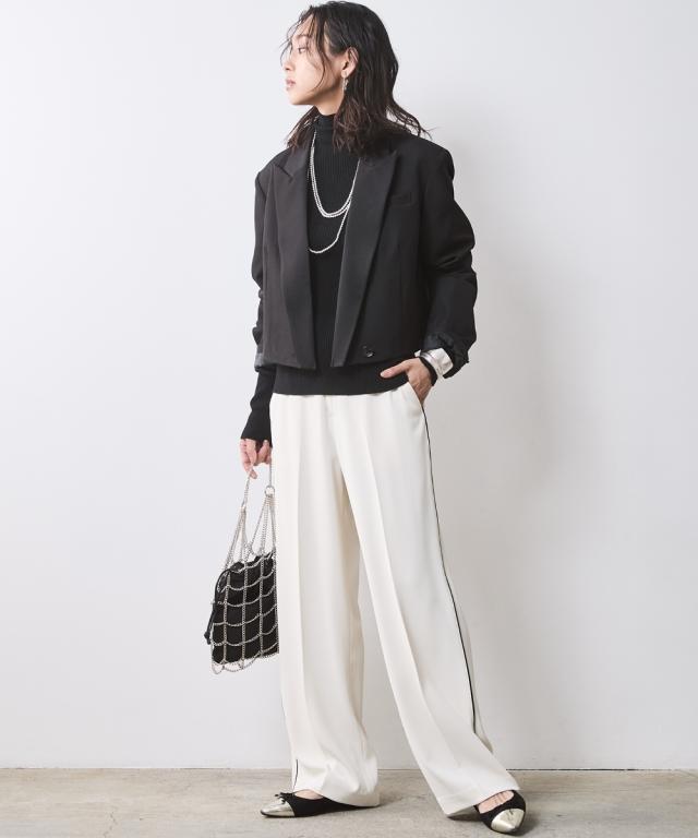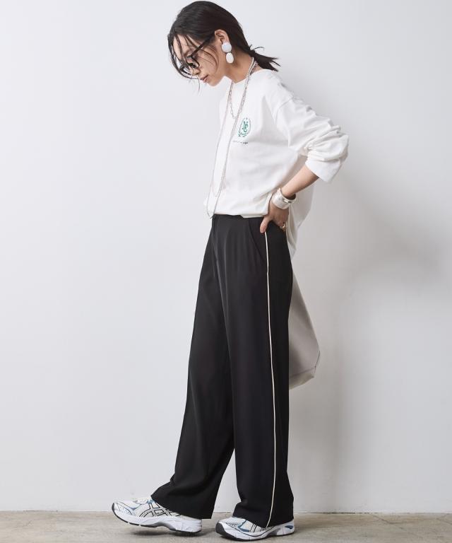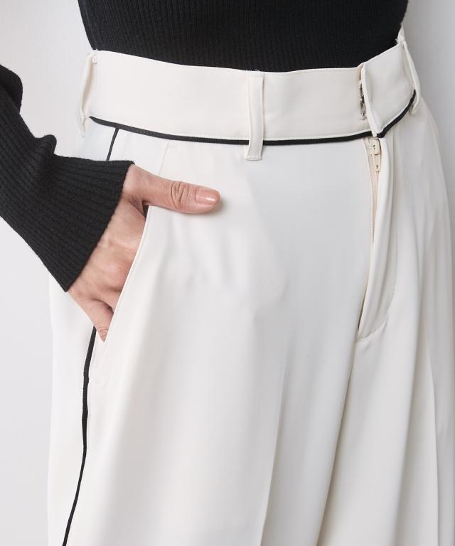 洗練されたデザインの配色パイピングワイドストレートパンツ。 ■デザイン シンプルなワイドパンツに今季のトレンドティティールの配色パイピングを施し、遊び心をプラスしました。 一枚でも様になるデザインパンツです。 ベーシックなお色味でデイリーに着回せるボトムです。 ■素材 つるっとしたタッチとさらりとした着心地が特徴的な素材。 ポリエステル素材なのでシワにもなりにくくお取り扱いが簡単です。 ■おすすめのスタイリング シンプルなデザインなのでスタイリングに落とし込みやすく様々なスタイルにマッチする汎用性の高いアイテムです。