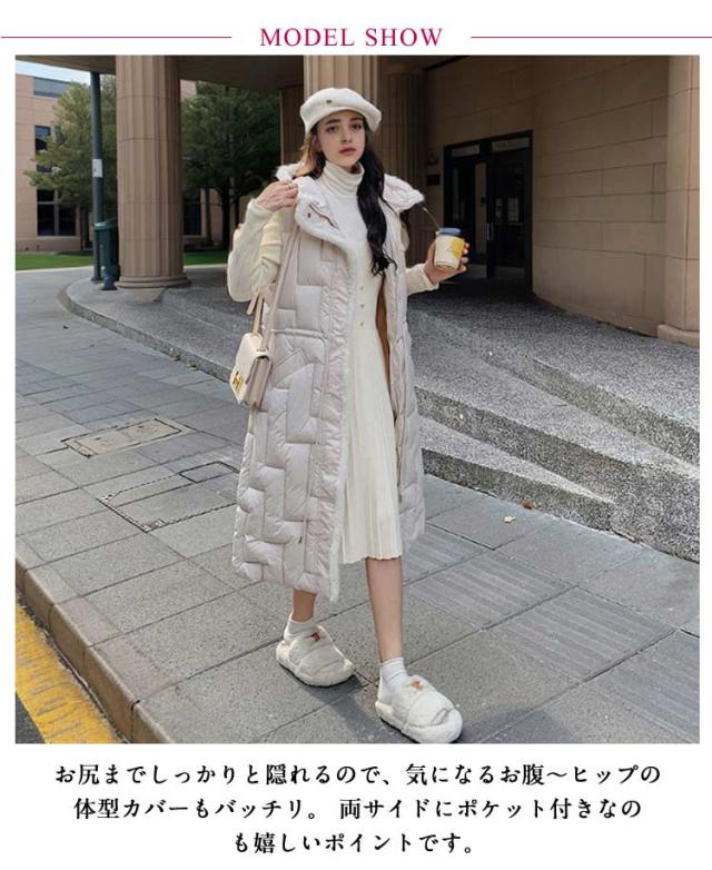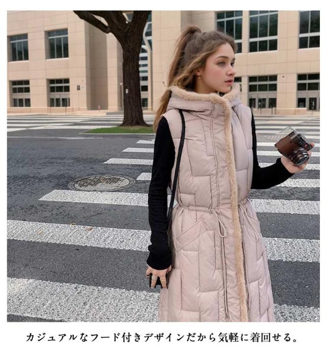 | 着心地がとても良く、暖かく、軽くておしゃれなダウン風の中綿ベスト。 お尻までしっかりと隠れるので、気になるお腹〜ヒップの体型カバーもバッチリ。 両サイドにポケット付きなのも嬉しいポイントです。 カジュアルなフード付きデザインだから気軽に着回せる。ジーンズやデニム、チノパンやテーパードパンツとキレイめカジュアルスタイル。 ロング丈でしっかりとヒップが隠れる! パンツにもスカートにも合わせやすい。 防寒対策もバッチリです! 軽量なのに保温性や防寒性もありながら様々なスタイルを楽しむことができます。 | |