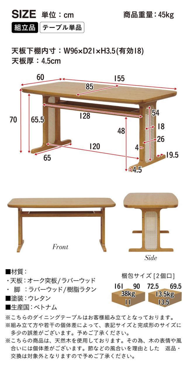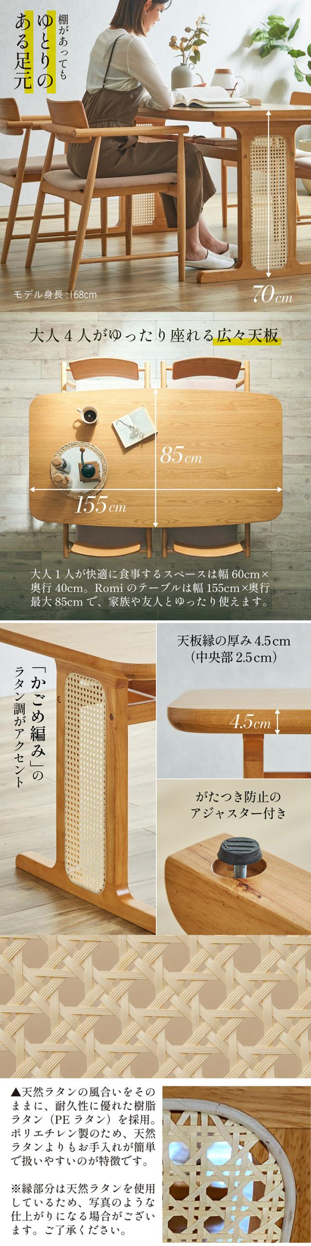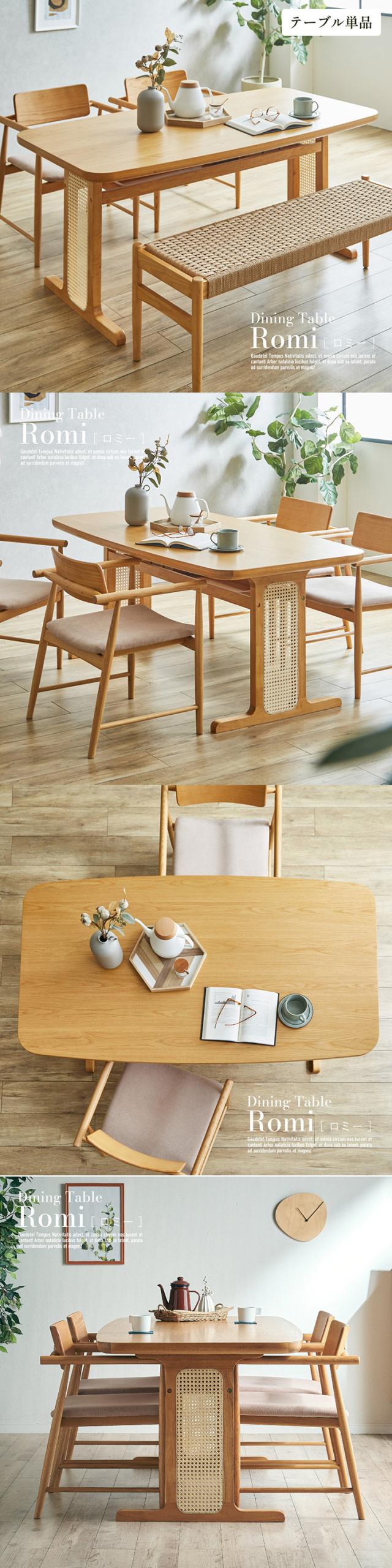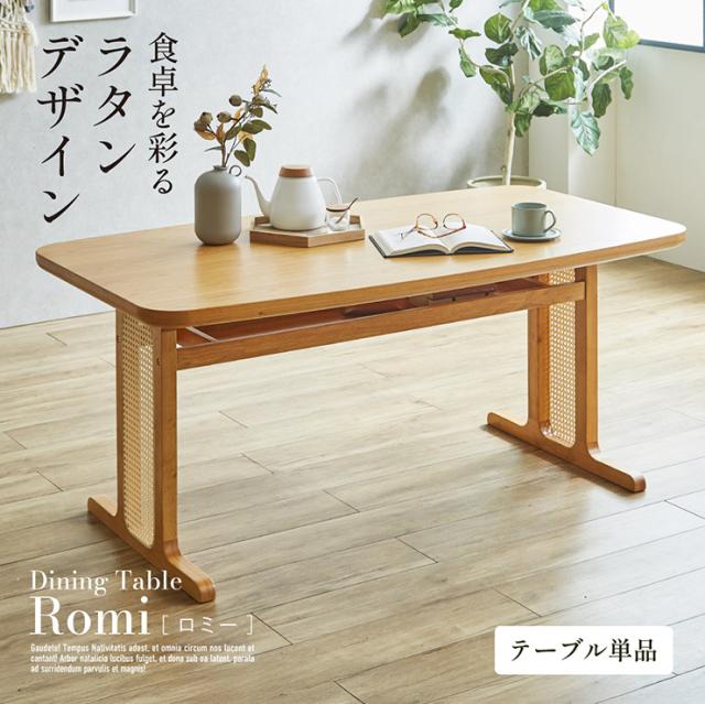 ダイニングテーブル 4人掛け 幅155cm 単品 ラタン ダイニングテーブル Romi(ロミー) ダイニング テーブル 長方形 食卓テーブル ワークデスク カフェテーブル 収納 天然木 ナチュラル 作業台 おしゃれ モダン