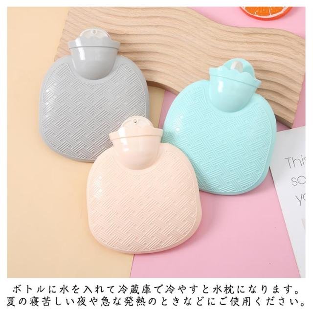 | シンプルなデザインで寒い季節に便利な湯たんぽです。 350ml 500ml 800ml 1000mlの4サイズ展開!お腹や腰にあてておくと、体がじんわり温まってきます。 お湯を入れるボトルには合成樹脂PVCを使用。柔らかな感触で温めたいところに優しくフィット。 ボトルに水を入れて冷蔵庫で冷やすと水枕になります。夏の寝苦しい夜や急な発熱のときなどにご使用ください。 使用後は水気をよく切って乾燥させるだけでお手入れが簡単。 昼夜問わずご自宅やオフィス、アウトドアでご使用頂けます。 | |