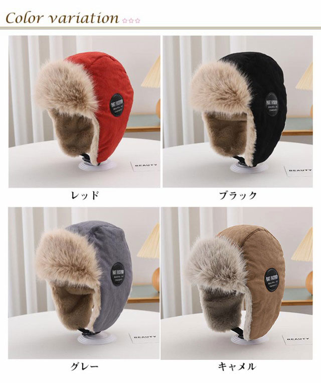| ファーで丁度いいボリュームの耳当てと小ぶりのツバが可愛らしいデザイン。 ベースボールキャップよりファッション性が高く、 フライトキャップより気軽に被れる絶妙なバランス。 ワンランク上のキャップはいつものコーデにアクセントを加えてくれます。 アウトドアや、寒い日のお出かけにオススメしたいキャップです。 耳当て部分を垂らすととても暖かく、おしゃれ用だけではなく防寒にも最適です。 洗浄方法 1.帽子を薄めた洗剤の中に入れます(粉末洗剤や石鹸などのアルカリ性洗剤は使用しないでください) 2. 歯ブラシを使って優しくこすり、内側の汗止めバンドをさらに数回こすります。 3.洗濯後はよくすすぎ、身だしなみを整えて風通しの良い場所に平らに置き、日光を避けてください。 | |