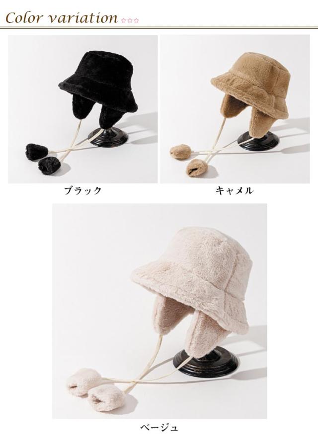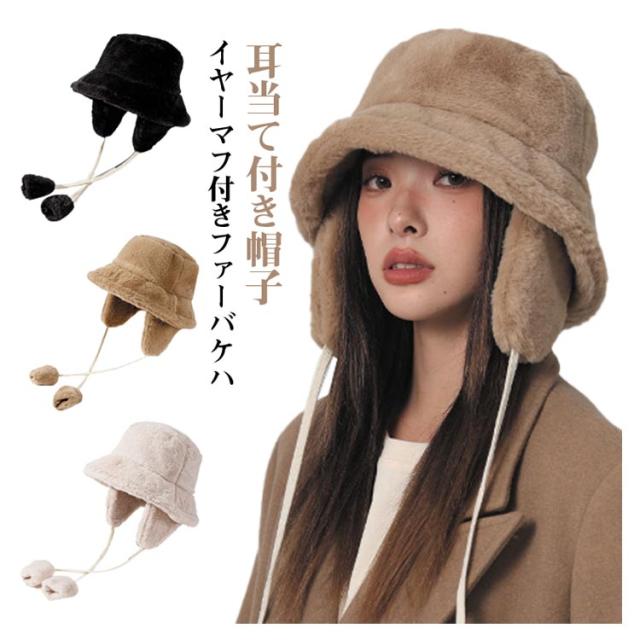 バケットハット レディース 冬 もこもこ 帽子 ハット イヤーマフ 2way 取り外し可 フェイクファー 無地 防寒 あったか おしゃれ かわいい ふわふわ 折りたたみ 耳当て コンパクト 紐 調節 カジュアル シンプル デイリー 韓国 コーデ アウトドア キャンプ イアマフ 秋冬