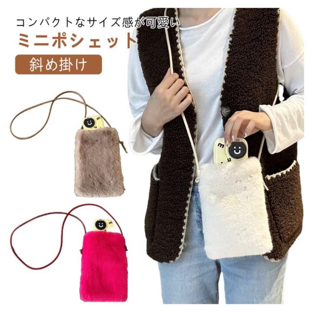 冬用 スマホポーチ ファー ポシェット ふわふわ ミニポシェット ファーバッグ ファー バッグ ポーチ ポシェット 斜め掛け スマホ ミニ レディース ショルダー 小さめ ミニバッグ もこもこ 軽量 軽い 秋 冬 送料無料