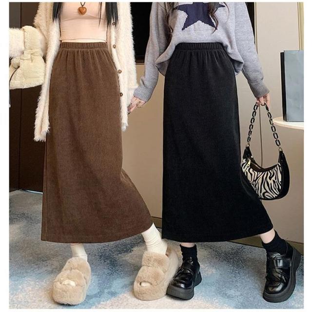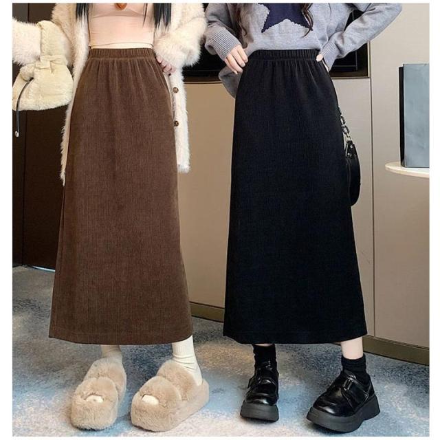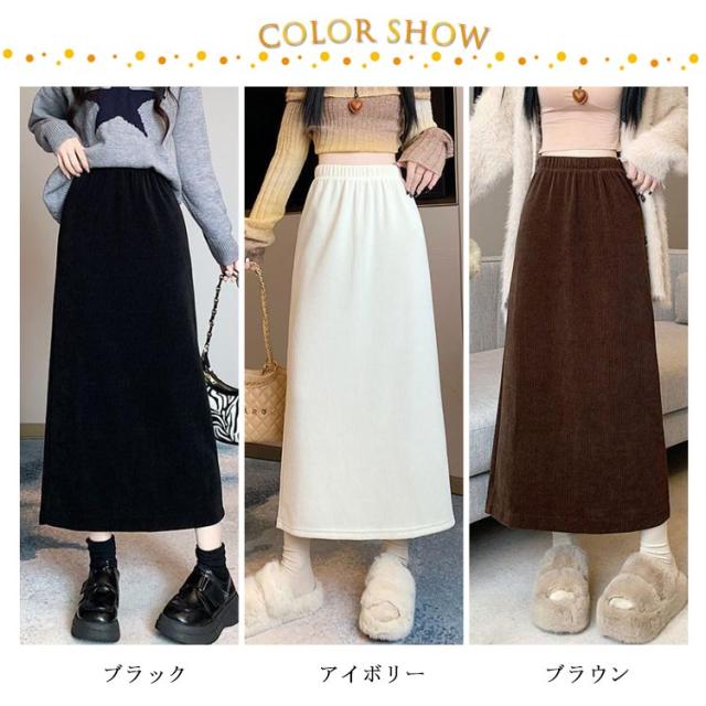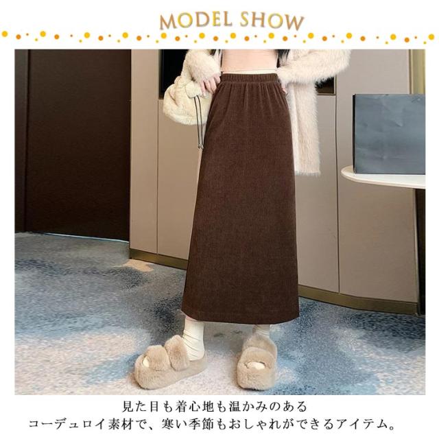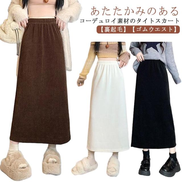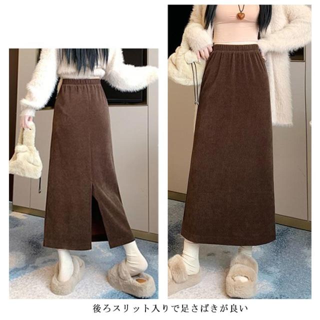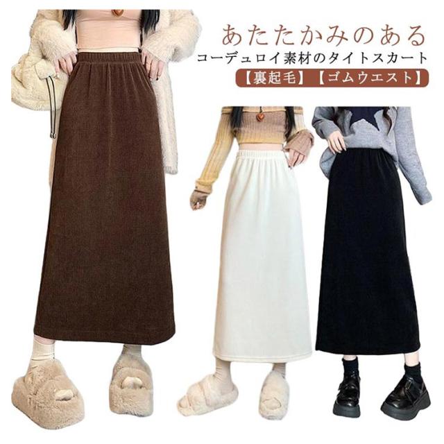 コーデュロイ スカート タイト 裏起毛 レディース 秋冬 厚手 コーデュロイスカート マキシ丈 ゴム タイトスカート ロングスカート ハイウエスト バックスリット 大きいサイズ 通勤 通学 大人 カジュアル きれいめ 50代 40代 30代 20代 無地 【送料無料】