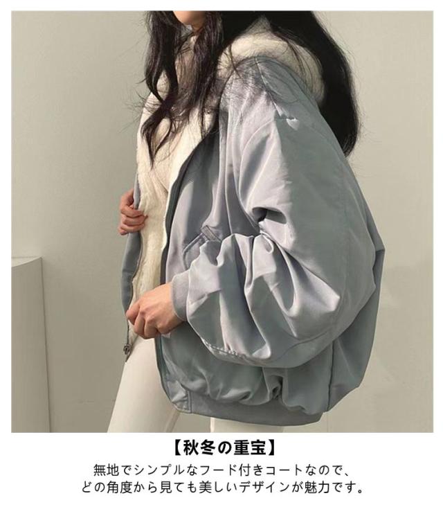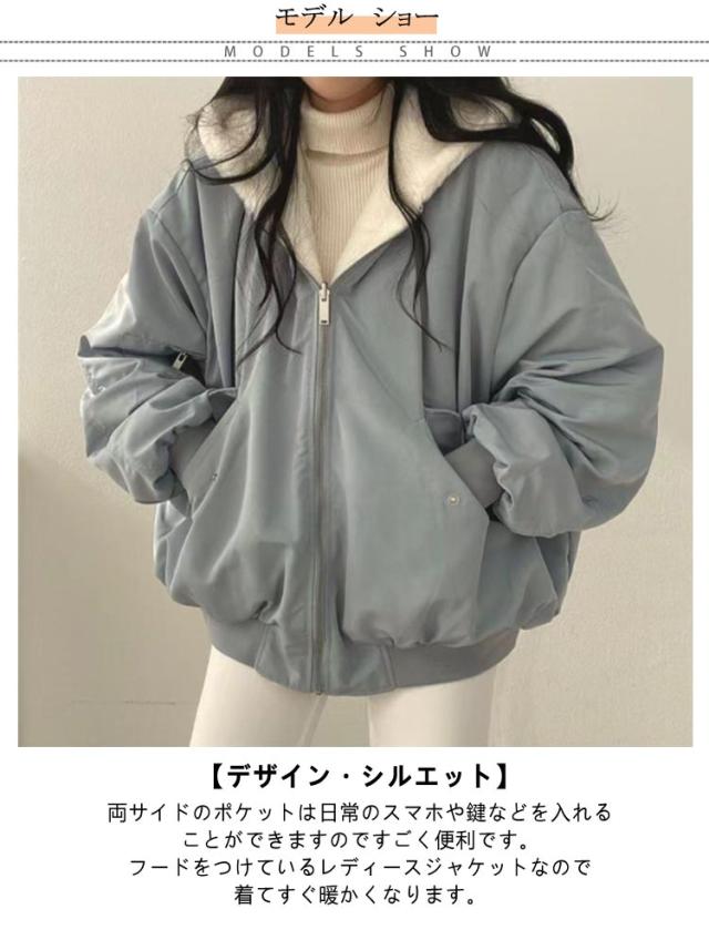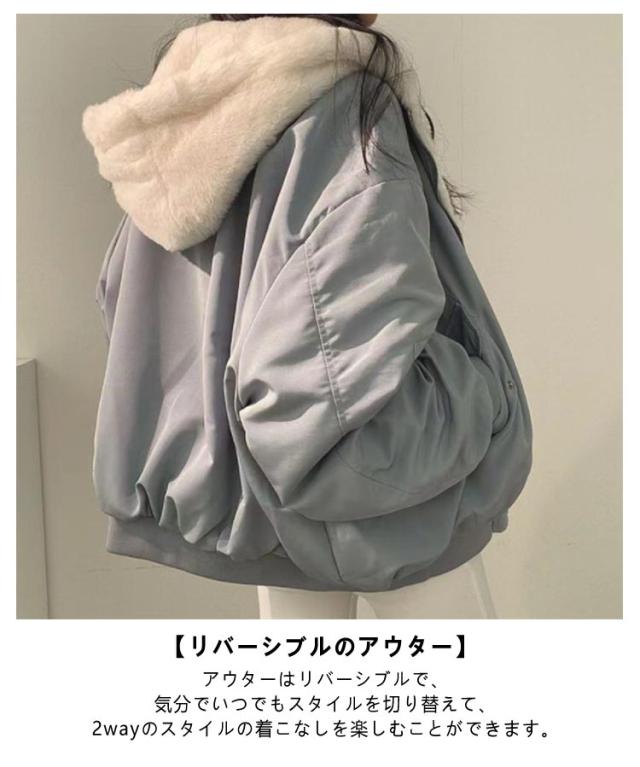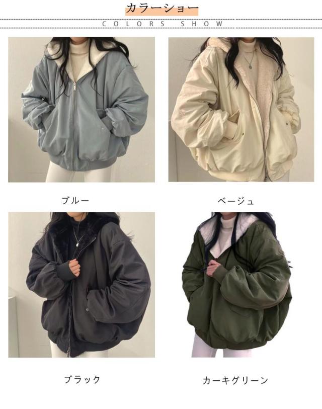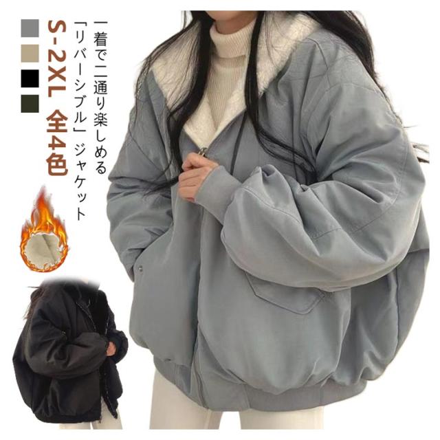 S-2XL 4色 リバーシブル アウター ジャケット レディース 冬 裏毛 ボア ブルゾン フード付き コート ファー もこもこ 防寒 大人 ショート丈 厚手 カジュアル 秋冬 長袖 羽織り フード ファスナー 秋 冬 あったか ゆったり トップス 通勤 おしゃれ 無地 黒