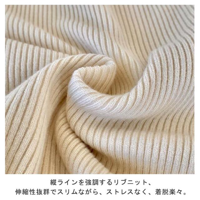 | 胸元の開きでほんのりセクシーな雰囲気を醸し出すニットトップス。 プチハイネックでスッキリ、どんなコーデにも合わせやすいです。 縦ラインを強調するリブニット、伸縮性抜群でスリムながら、ストレスなく、着脱楽々。 春、秋には1枚で、寒さが厳しい冬にはインナーとしてもお使い頂けます。 シンプル無地のデザインで、着回し力抜群、重ね着最適です。 パンツでもスカートでも、合わせやすく、ロングシーズン大活躍間違いなし。 | |