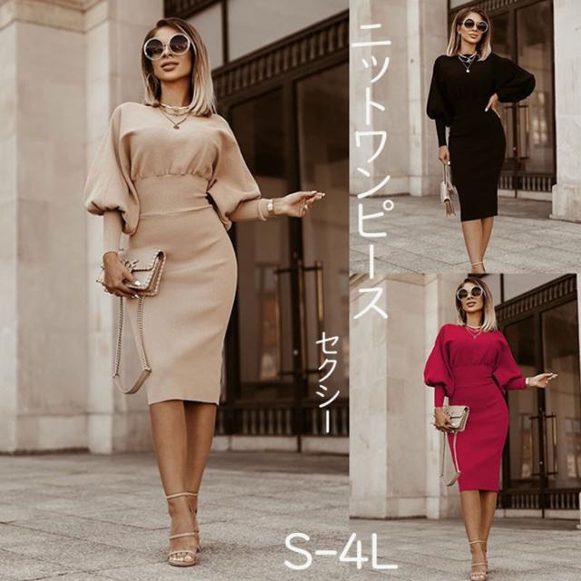 ニットワンピース レディース ニットドレス 秋冬 ミモレ丈 エレガント セクシー セータードレス 柔らかい きれいめ ベージュ ブラック レッド de010m6cyh5 de010m6