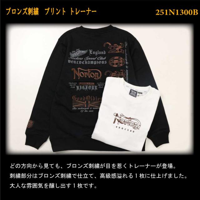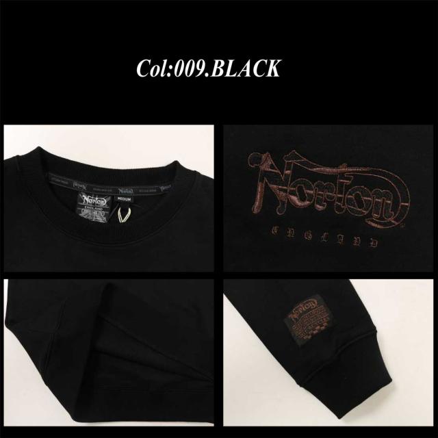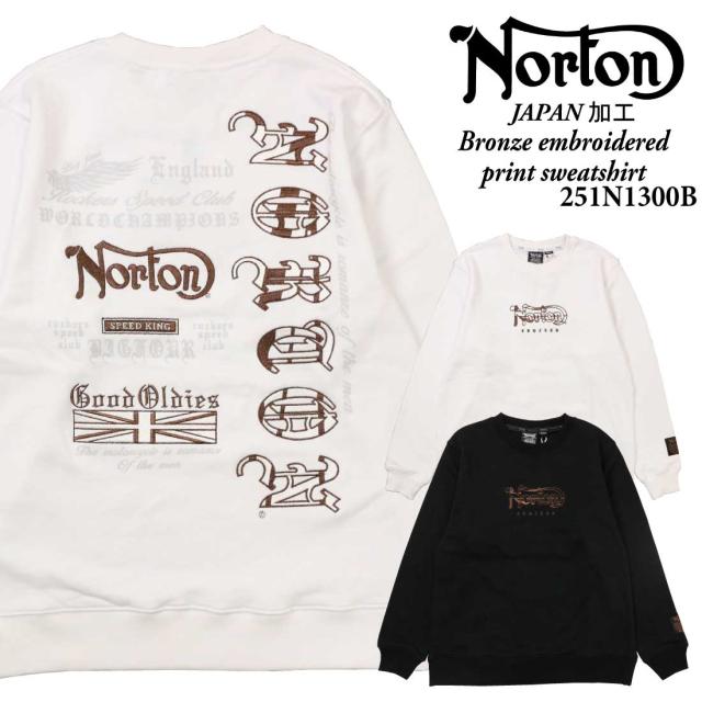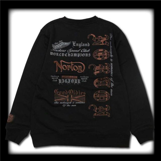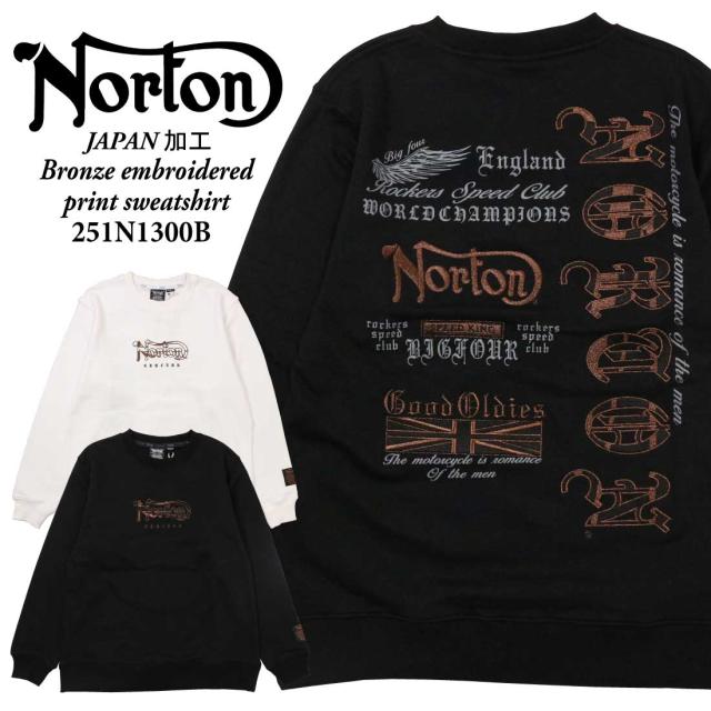Norton ノートン 服 長袖 トレーナー スウェット 251n1300b JAPAN加工 ブロンズ 刺繍 プリント トレーナー ロゴ アメカジ バイカー メンズ 服 クルーネック