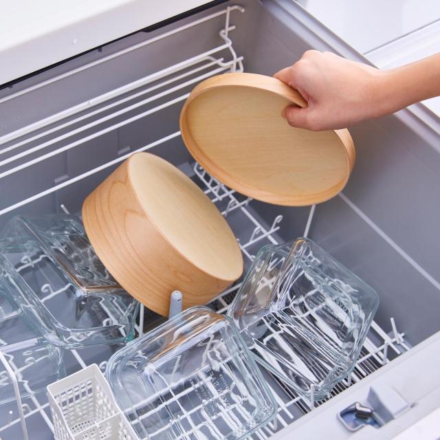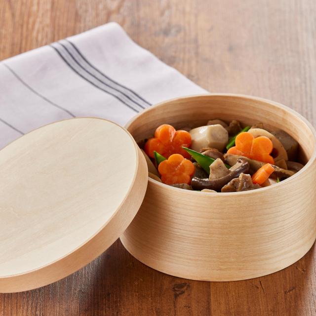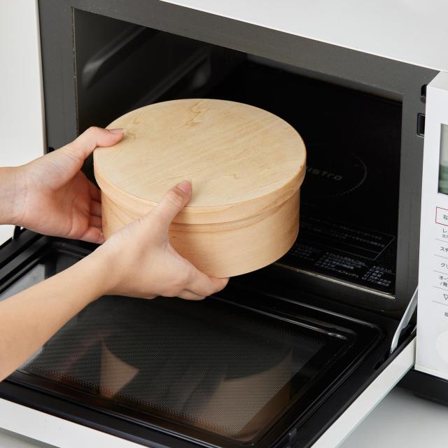 天然木化粧合板を型にはめ込み様々な形状に成形する技術を用いた「成形合板」と呼ばれる製法で作られた軽くて丈夫なおひつです。継ぎ目を職人が1つ1つやすりで磨き、フラットにする事で、雑菌の繁殖を抑えます。また、独自の成形技術・ナノコーティングにより電子レンジ・食洗機に対応します。ごはん以外にも煮物などを入れて保存したり、湯豆腐や釜揚げうどんなどにも使用できます。