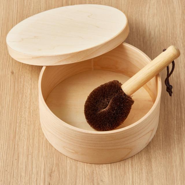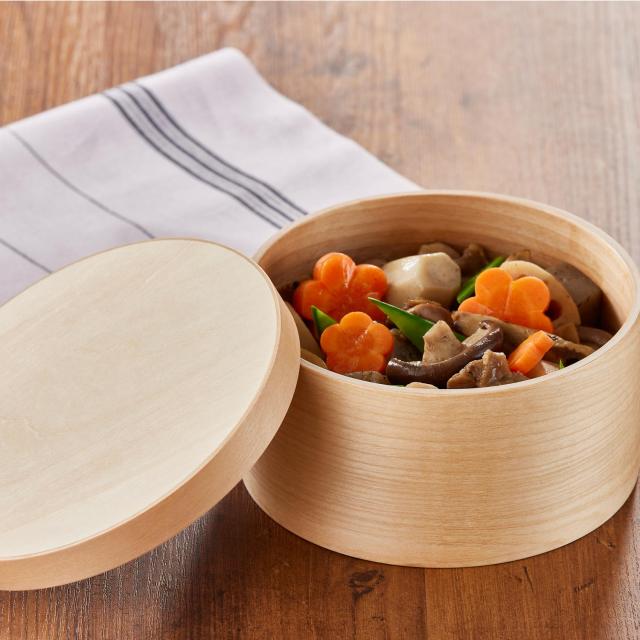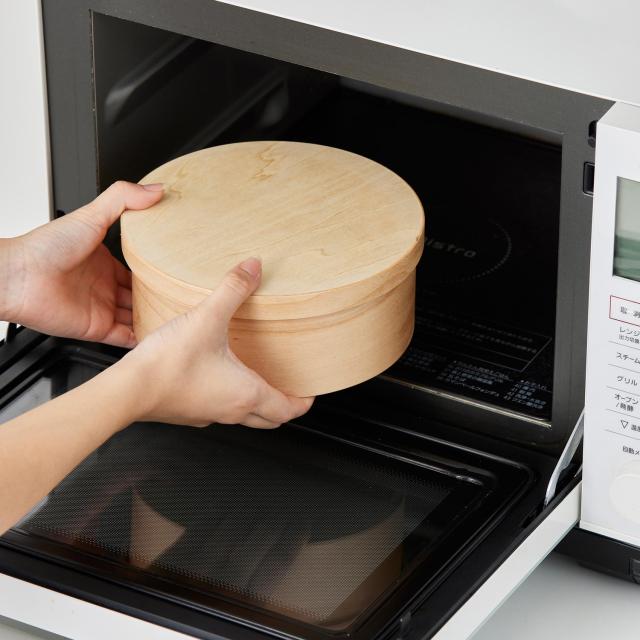 天然木化粧合板を型にはめ込み様々な形状に成形する技術を用いた「成形合板」と呼ばれる製法で作られた軽くて丈夫なおひつです。継ぎ目を職人が1つ1つやすりで磨き、フラットにする事で、雑菌の繁殖を抑えます。また、独自の成形技術・ナノコーティングにより電子レンジ・食洗機に対応します。ごはん以外にも煮物などを入れて保存したり、湯豆腐や釜揚げうどんなどにも使用できます。