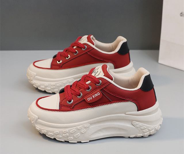 厚底スニーカー レディース インヒールシークレットシューズ 運動靴 軽量 美脚 疲れにくい レースアップ 身長アップ レッド