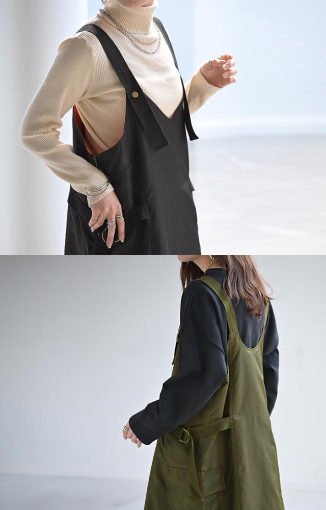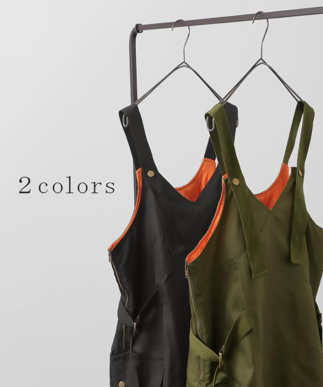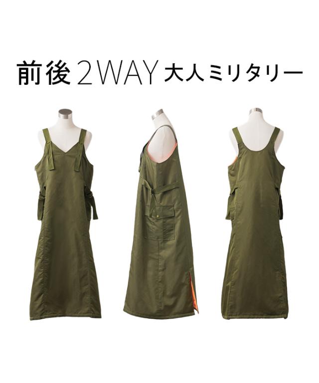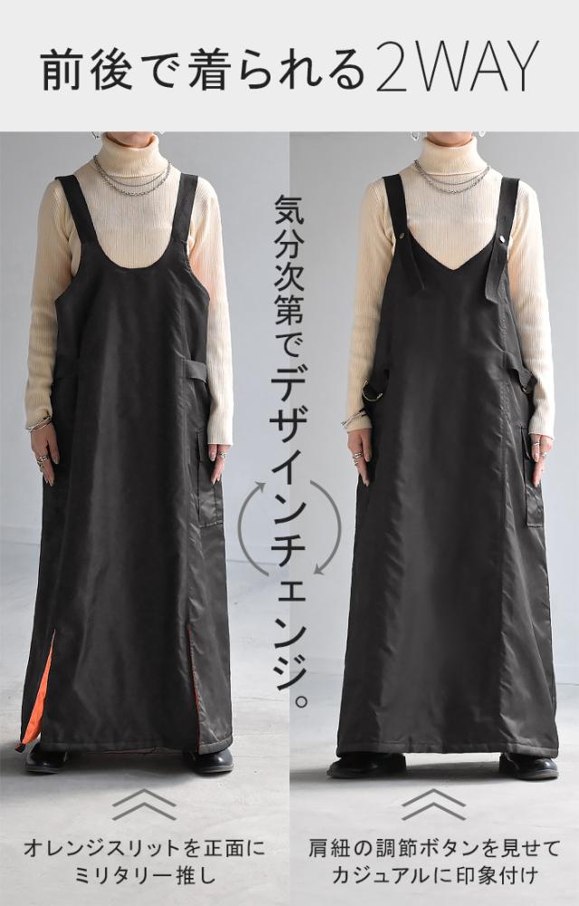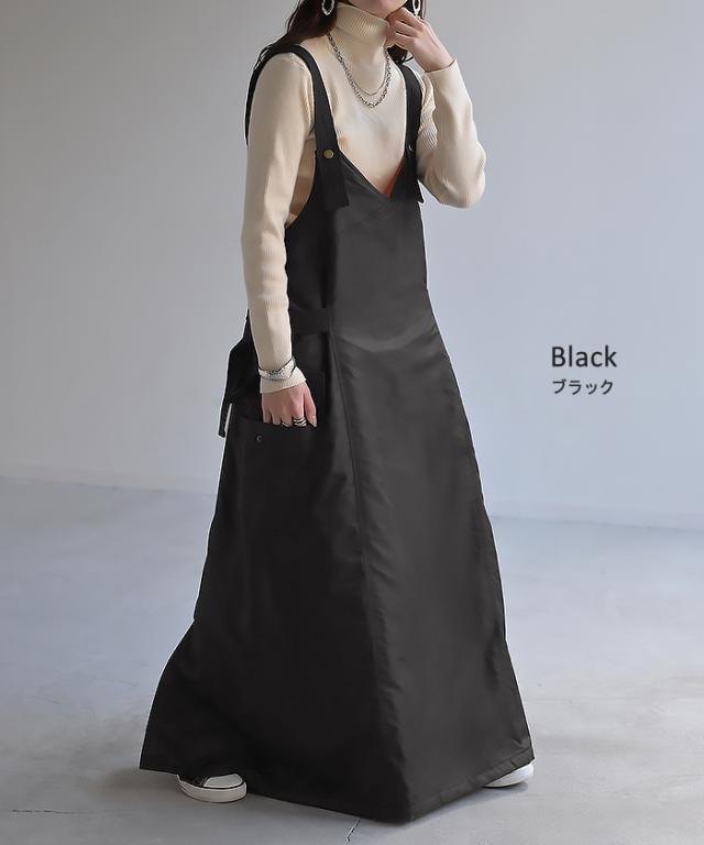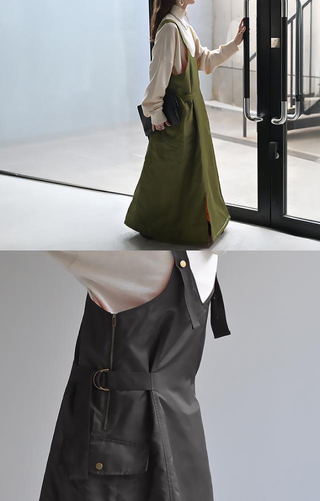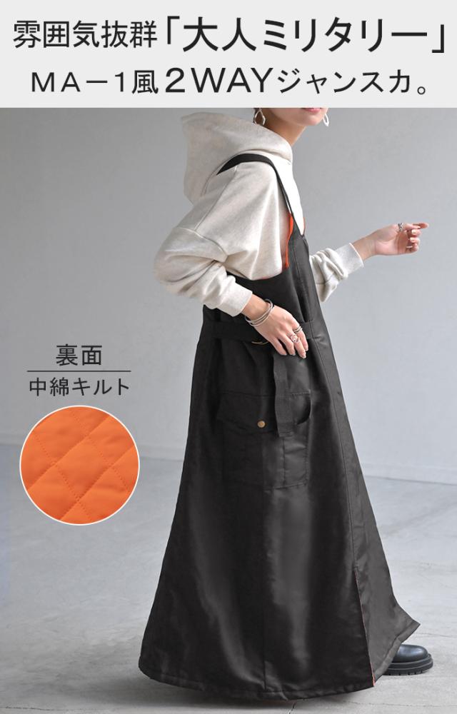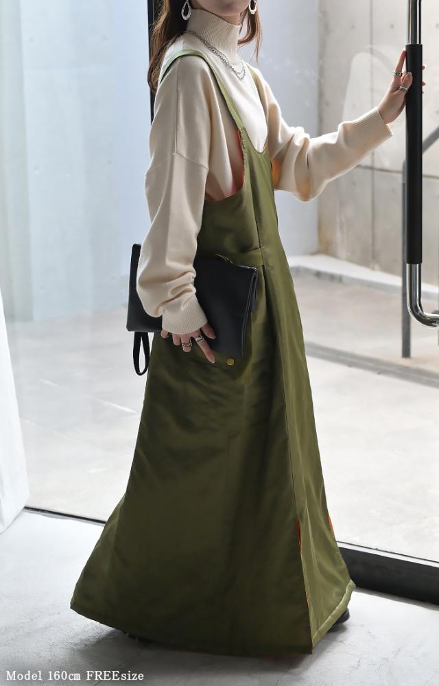 ワンピース MA-1 ジャンパースカート レディース ワンピ ロング ロングワンピース Aライン マキシ マキシワンピース ワンピ ロングワンピ ノースリーブ タンクトップ 重ね着 レイヤード 体型カバー 大きいサイズ 無地 黒 カーキ 秋 冬 HUG.U 秋新作