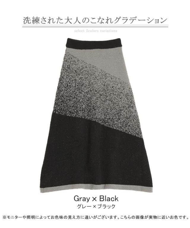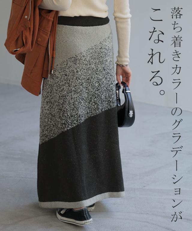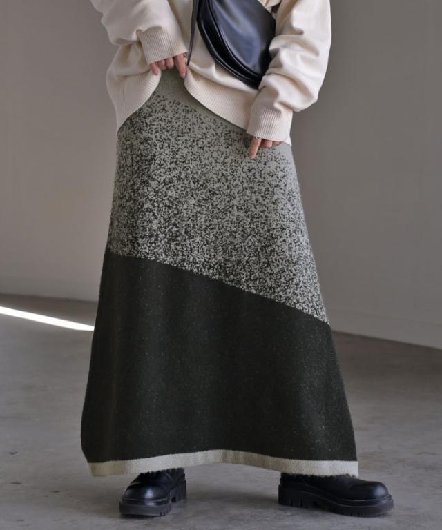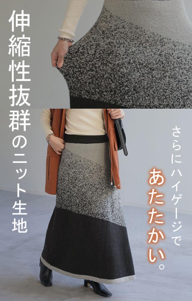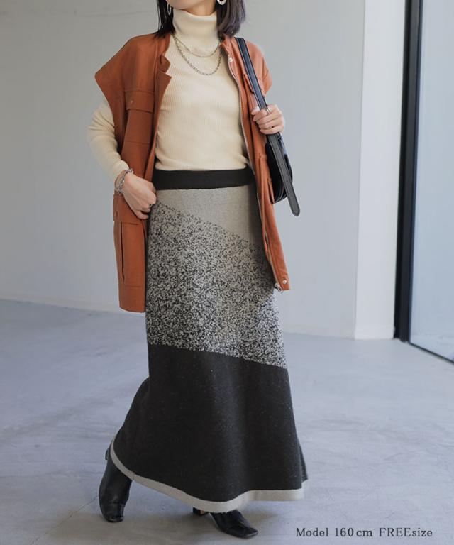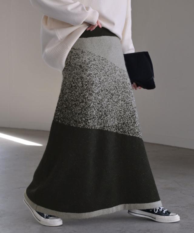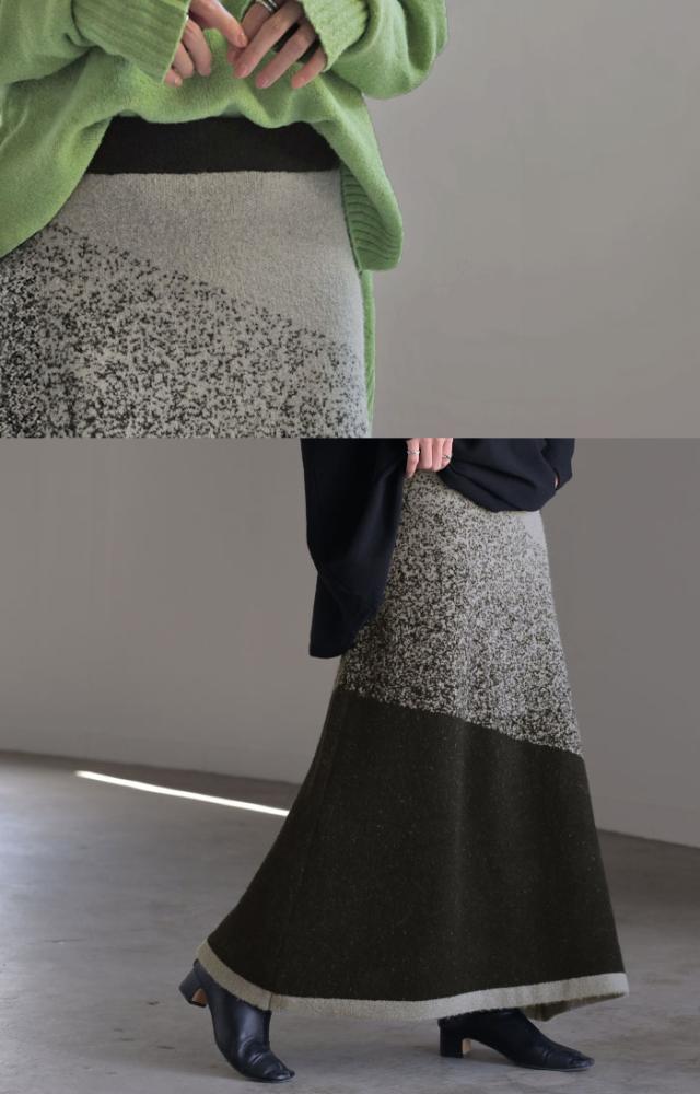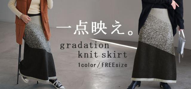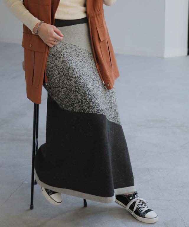個性的な魅力溢れるグラデーション配色デザインのニットスカートです。