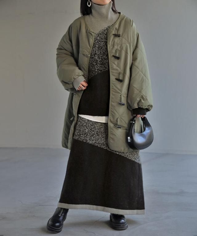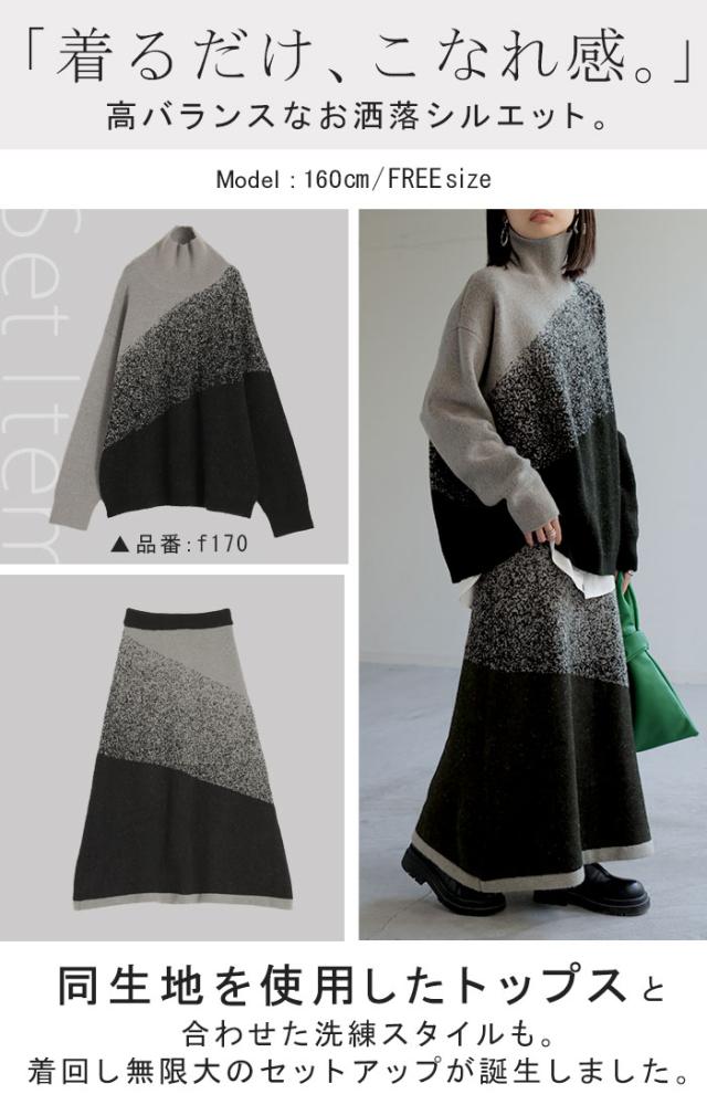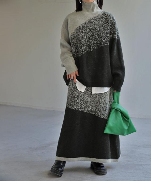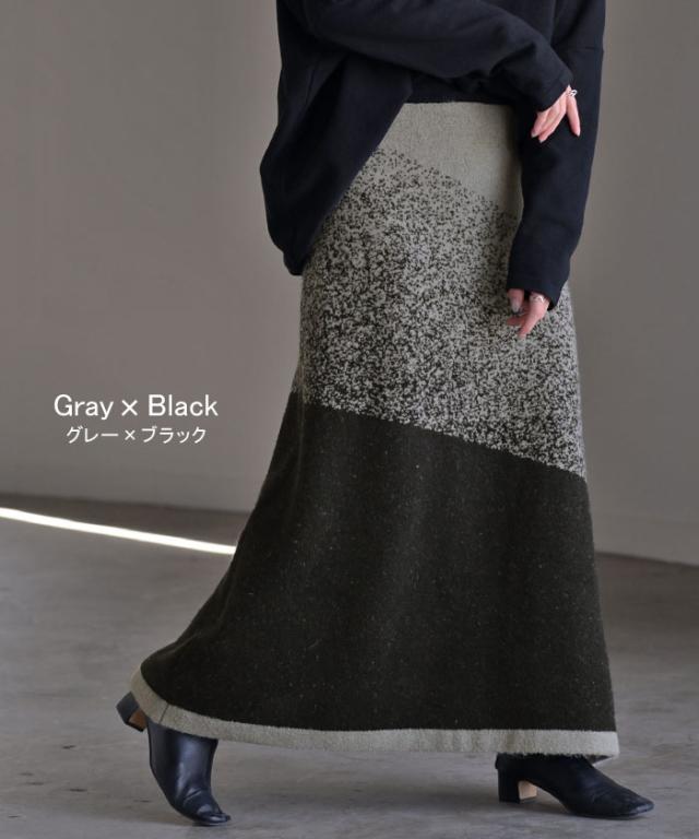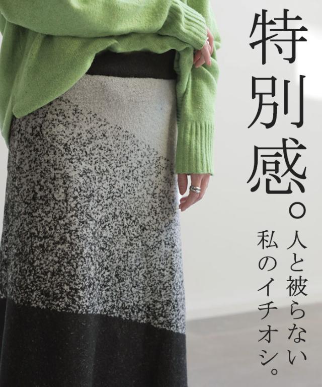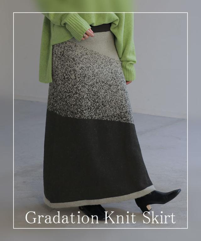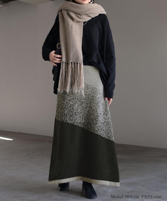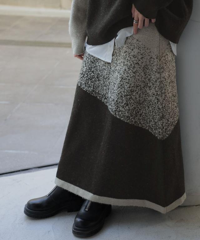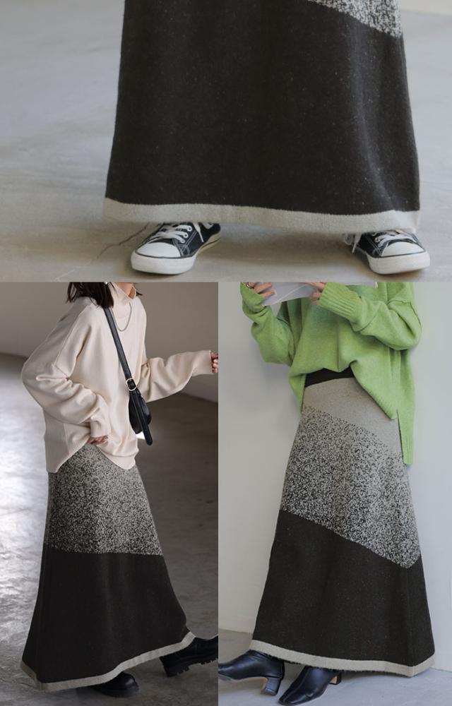個性的な魅力溢れるグラデーション配色デザインのニットスカートです。
