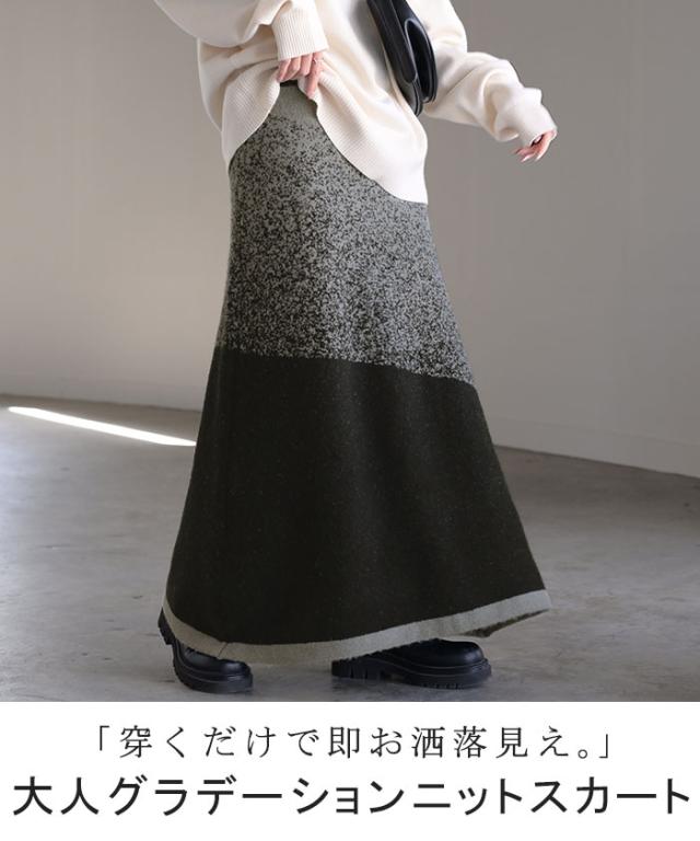 スカート 別売り セットアップ可 ニットスカート グラデーション ニット タイト レディース ロング ロングスカート ボトムス ボトム フレア フレアスカート マキシ マキシスカート タイトスカート 長い ゆったり きれいめ おしゃれ 秋 冬 HUG.U 秋新作
